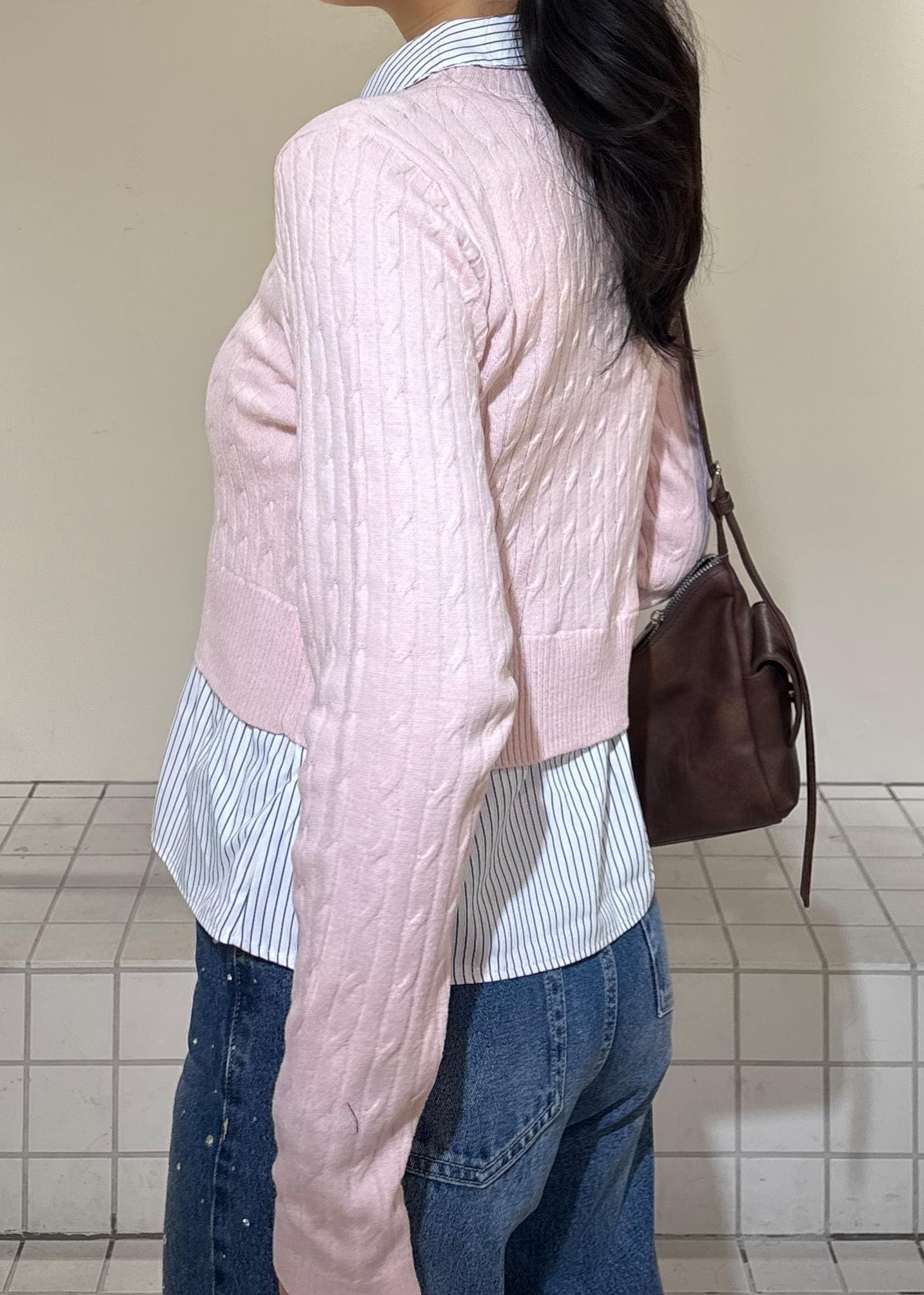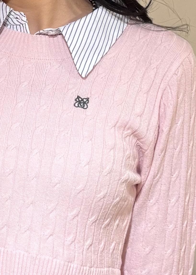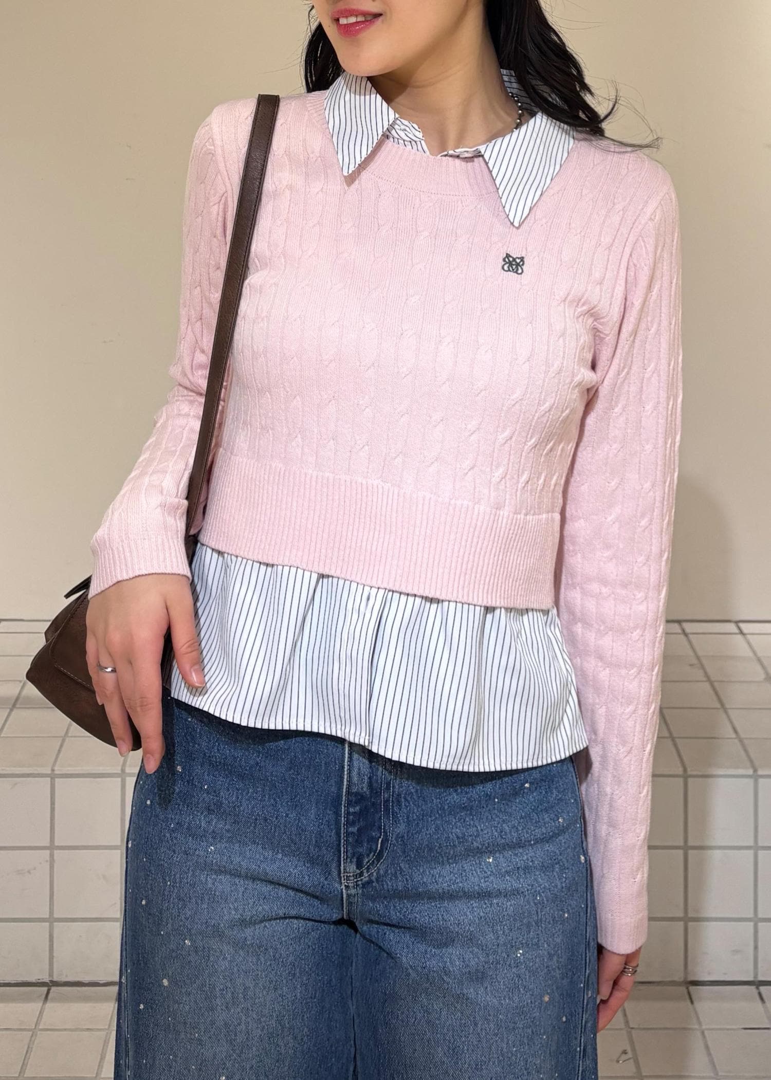 NEW!VIS【美得】ハイゲージケーブシャツドッキングプルオーバーピンク / F¥5,489レビューシャツがドッキングされているニット