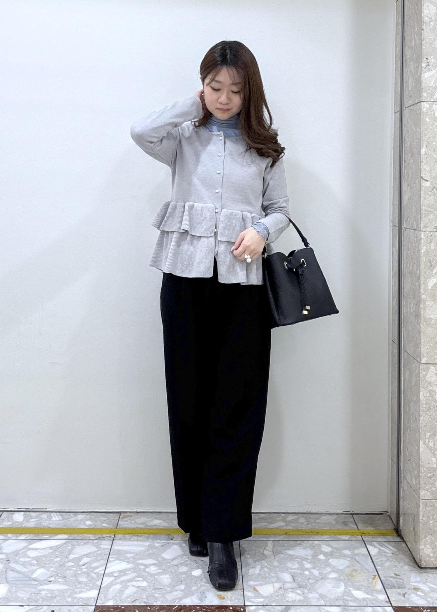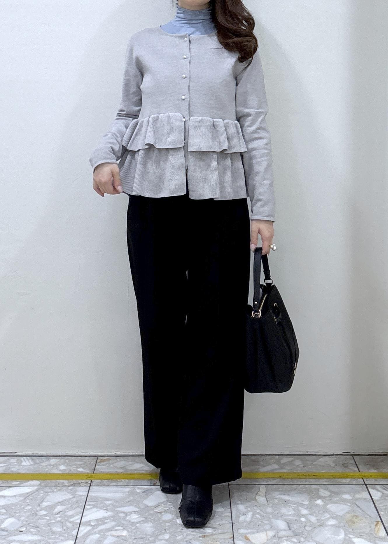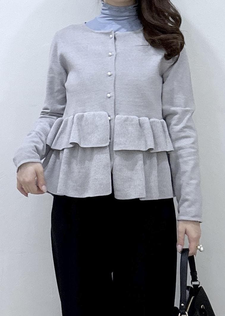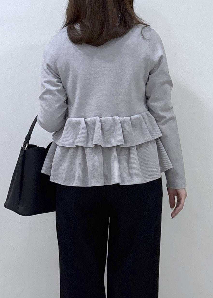 VISティアードペプラムニットカーディガンライトグレー / F¥6,589レビュー思ったよりもフリルが広がりすぎず、スッキリした着丈です。