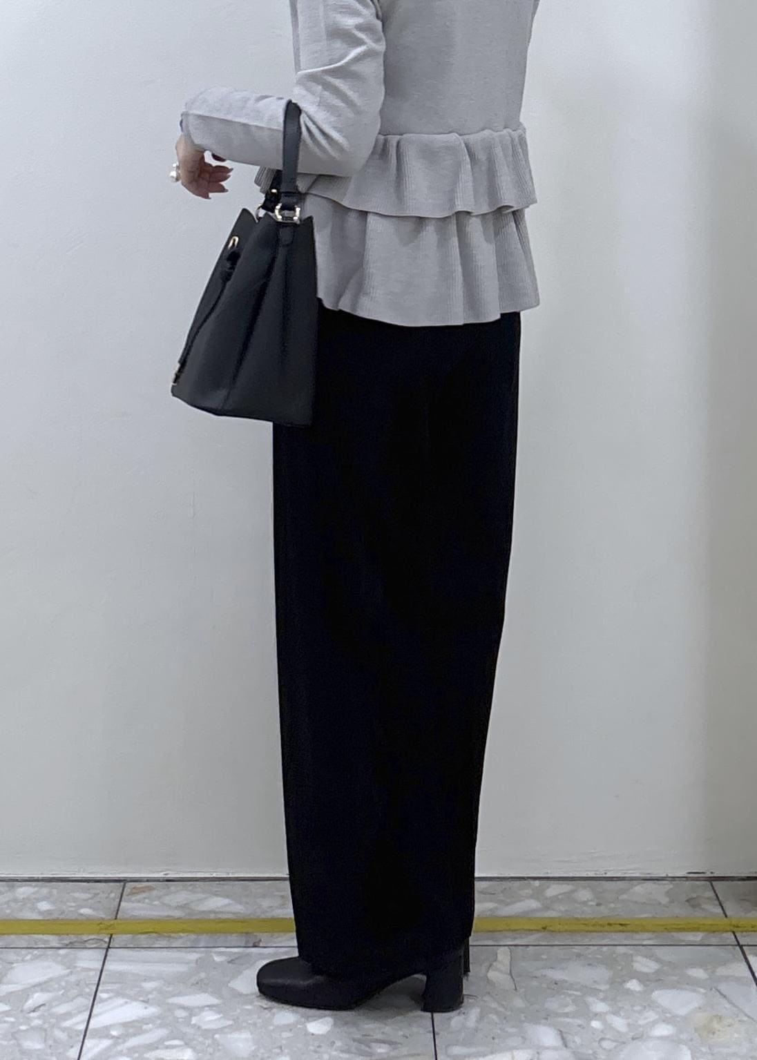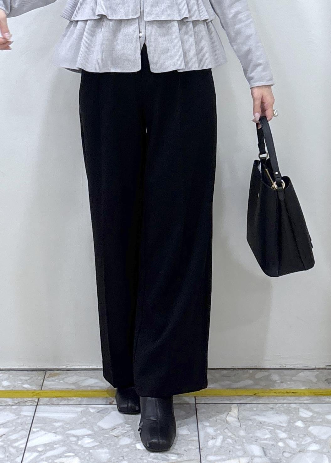 VIS【美easy】ウーリッシュワンタックワイドパンツ【セットアップ対応/洗える】ブラック / S¥6,589レビュー158cmSサイズ着用。フラットシューズで床につかない位でした!
