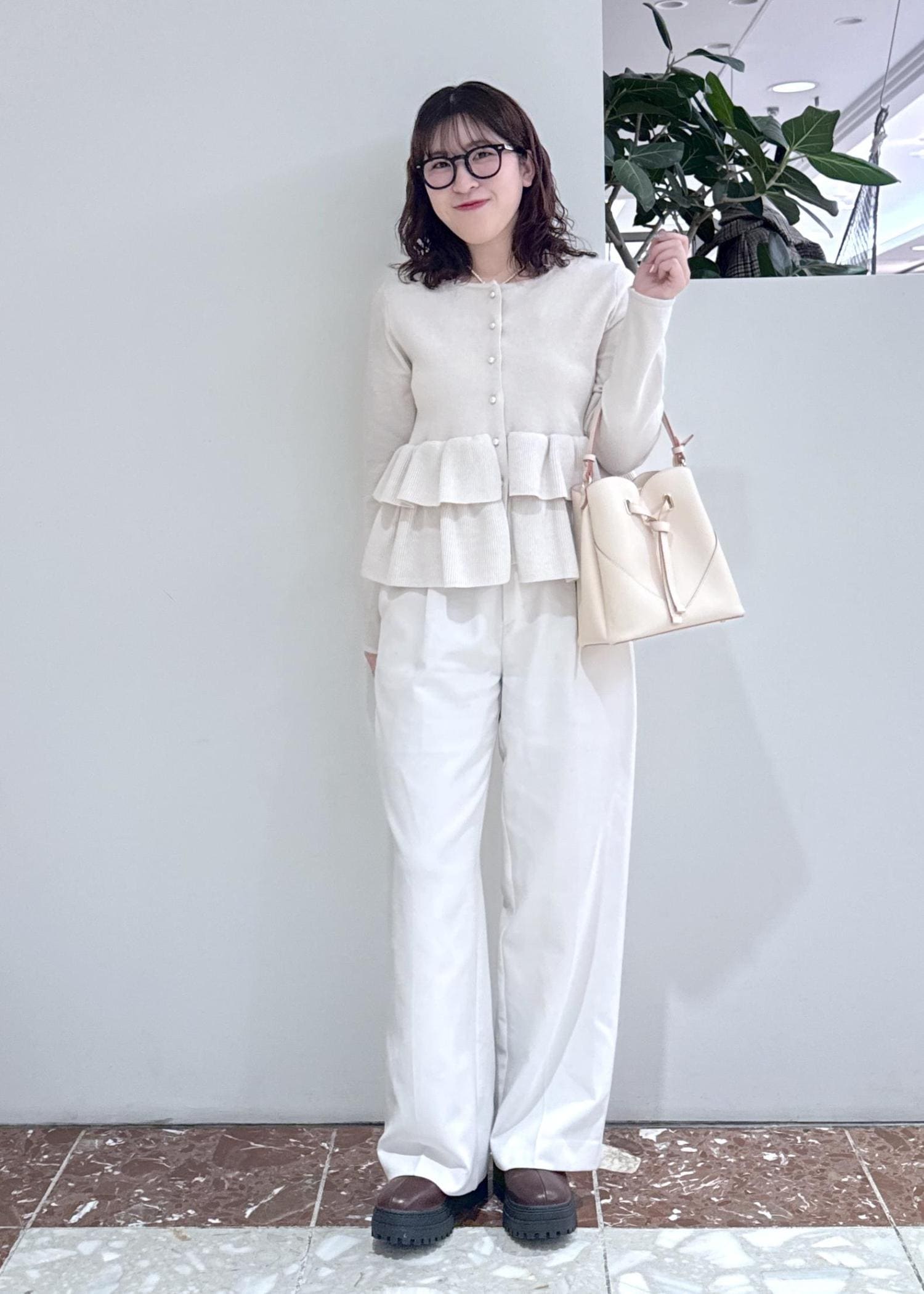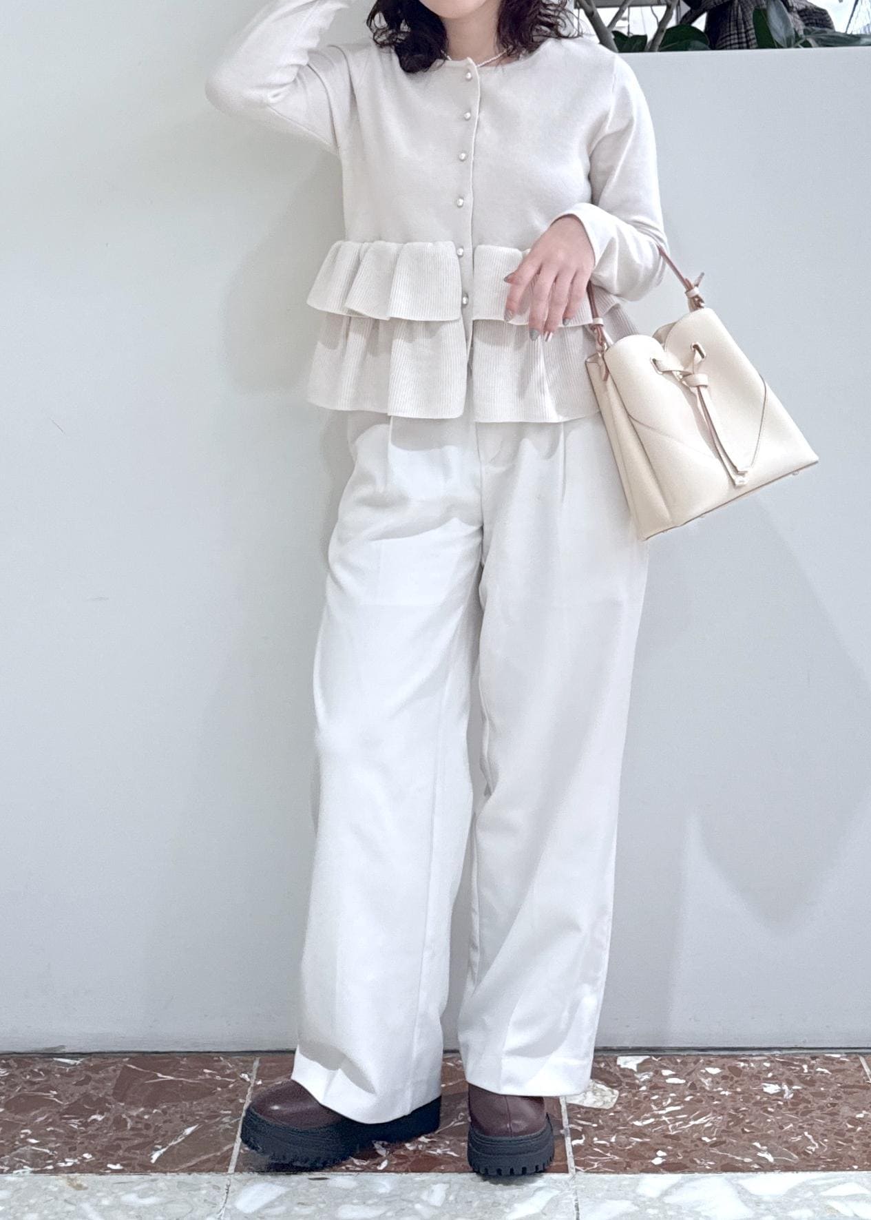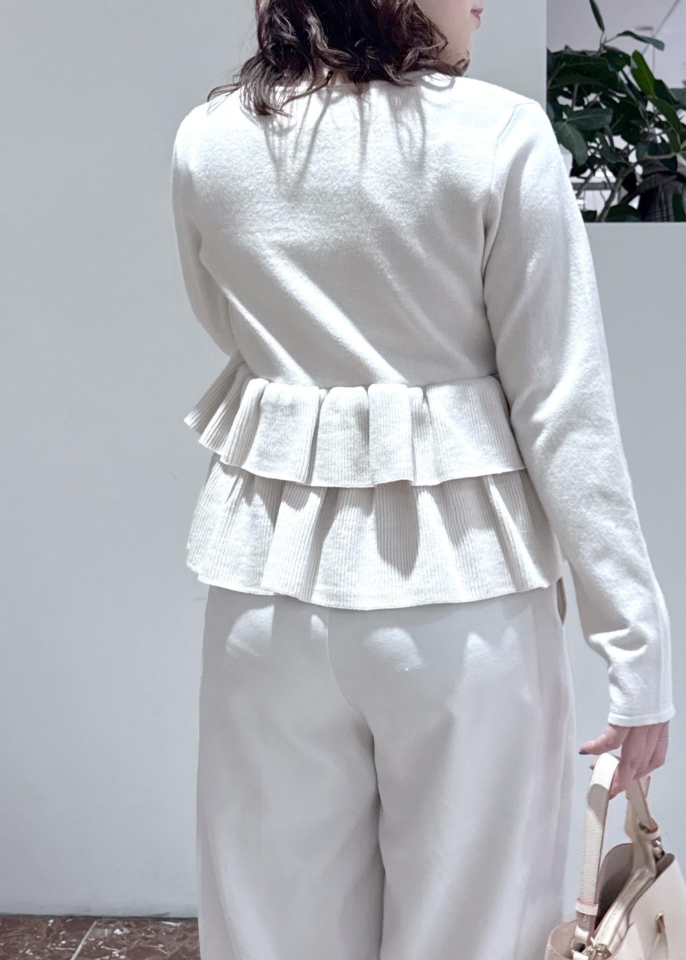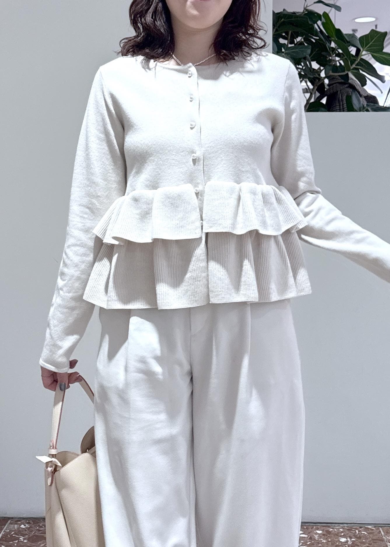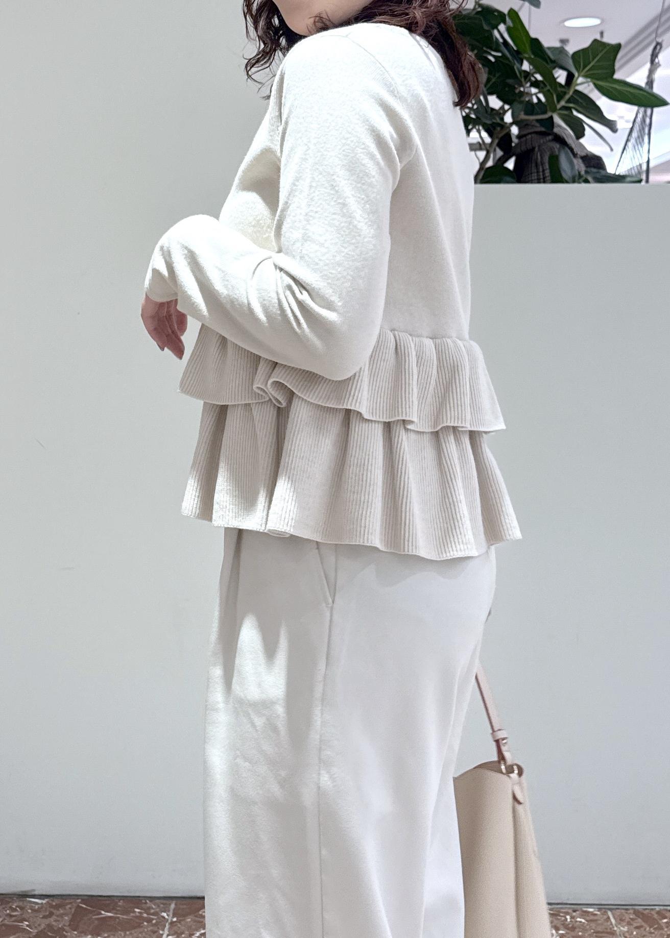 VISティアードペプラムニットカーディガンベージュ / F¥6,589レビューティアードフリルで1枚で華やか見えなトップス!