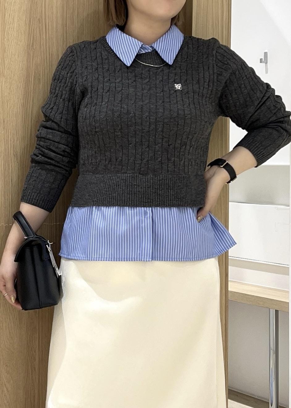 VIS【美得】ハイゲージケーブシャツドッキングプルオーバーチャコール / F¥4,940レビューコンパクトなシルエットですがストレッチが効いており締め付け感なし!