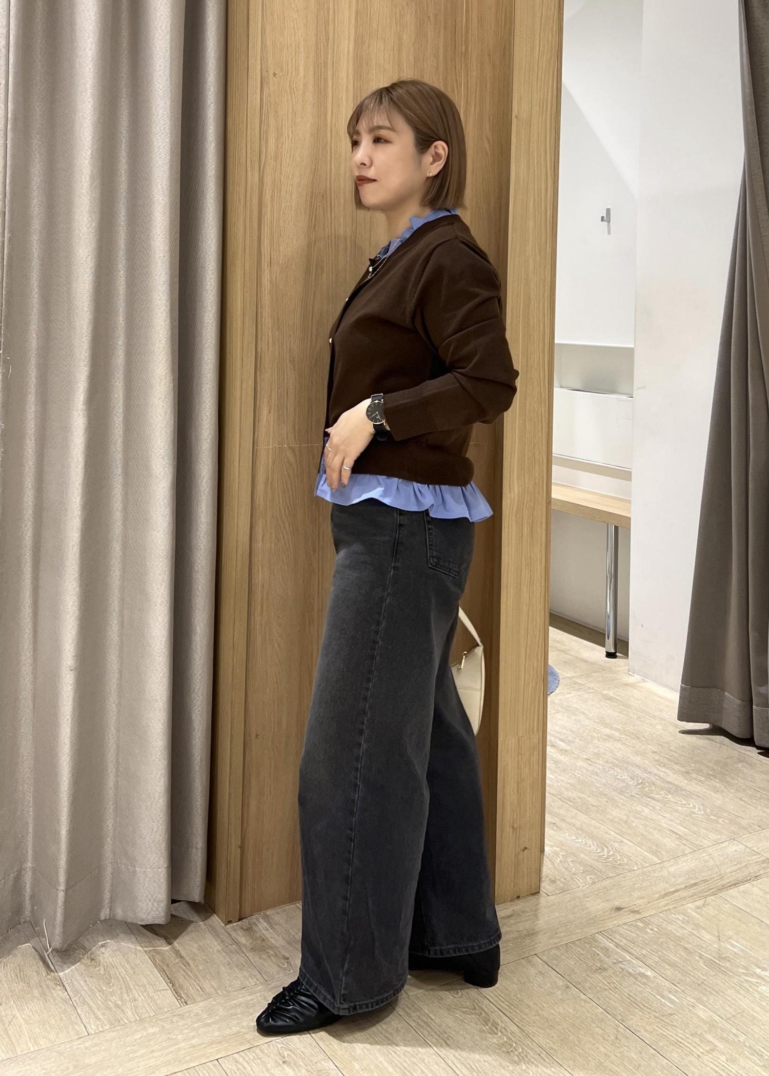 VIS【美得】フリル襟ドッキングニットカーディガントップスダークブラウン /¥5,929レビューフリルデザインがとても華やかです!