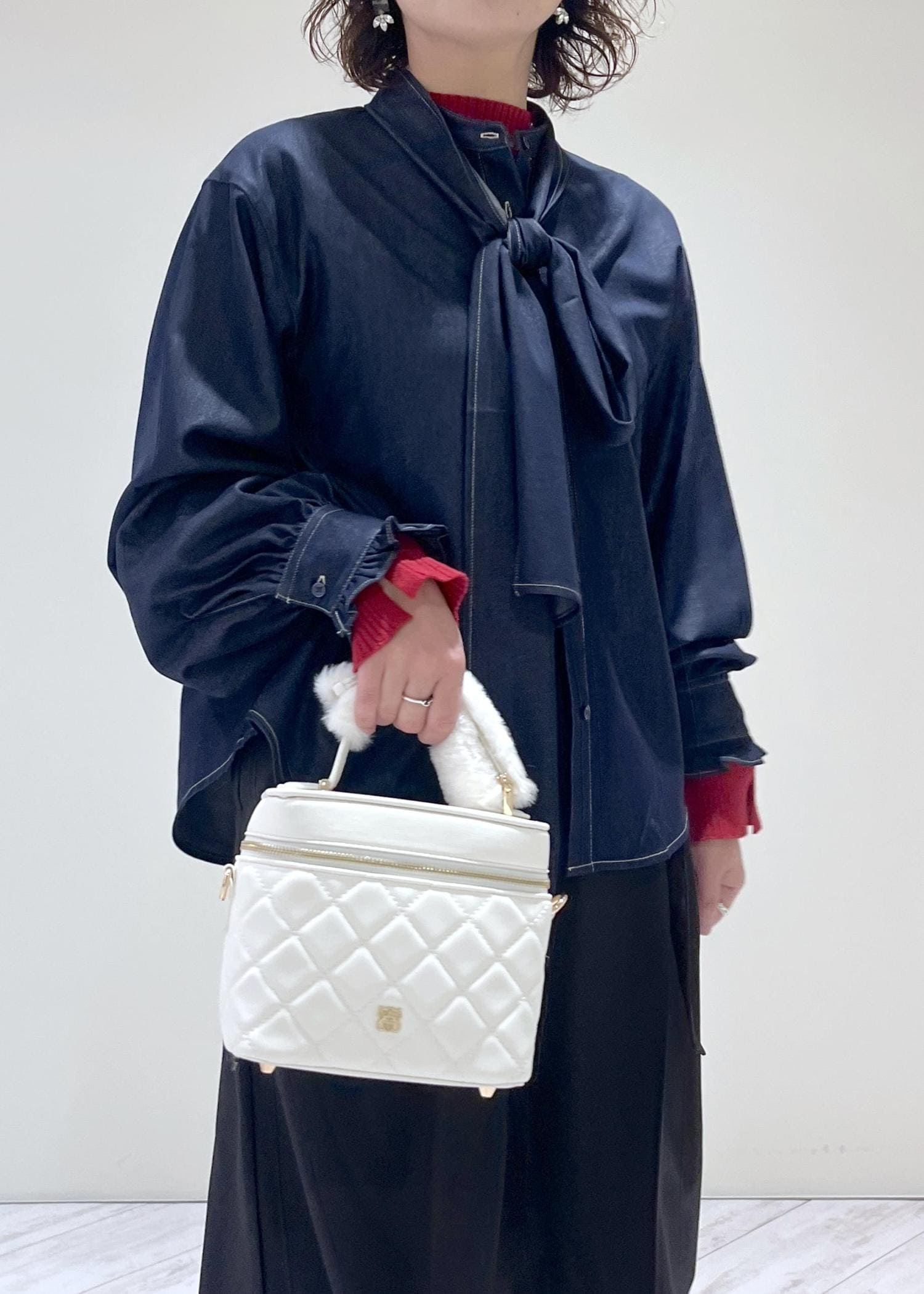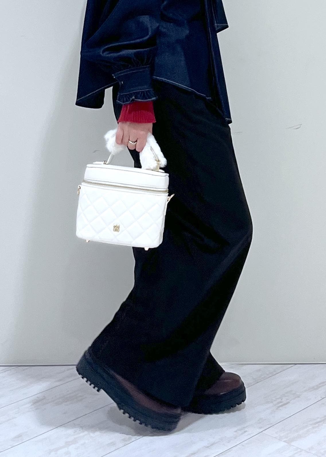 VISファーハンドルキルティング&ツイードバニティバッグ/2WAYオフホワイト / F¥7,909レビュー小ぶりなサイズ感がかわいいバニティバッグ!