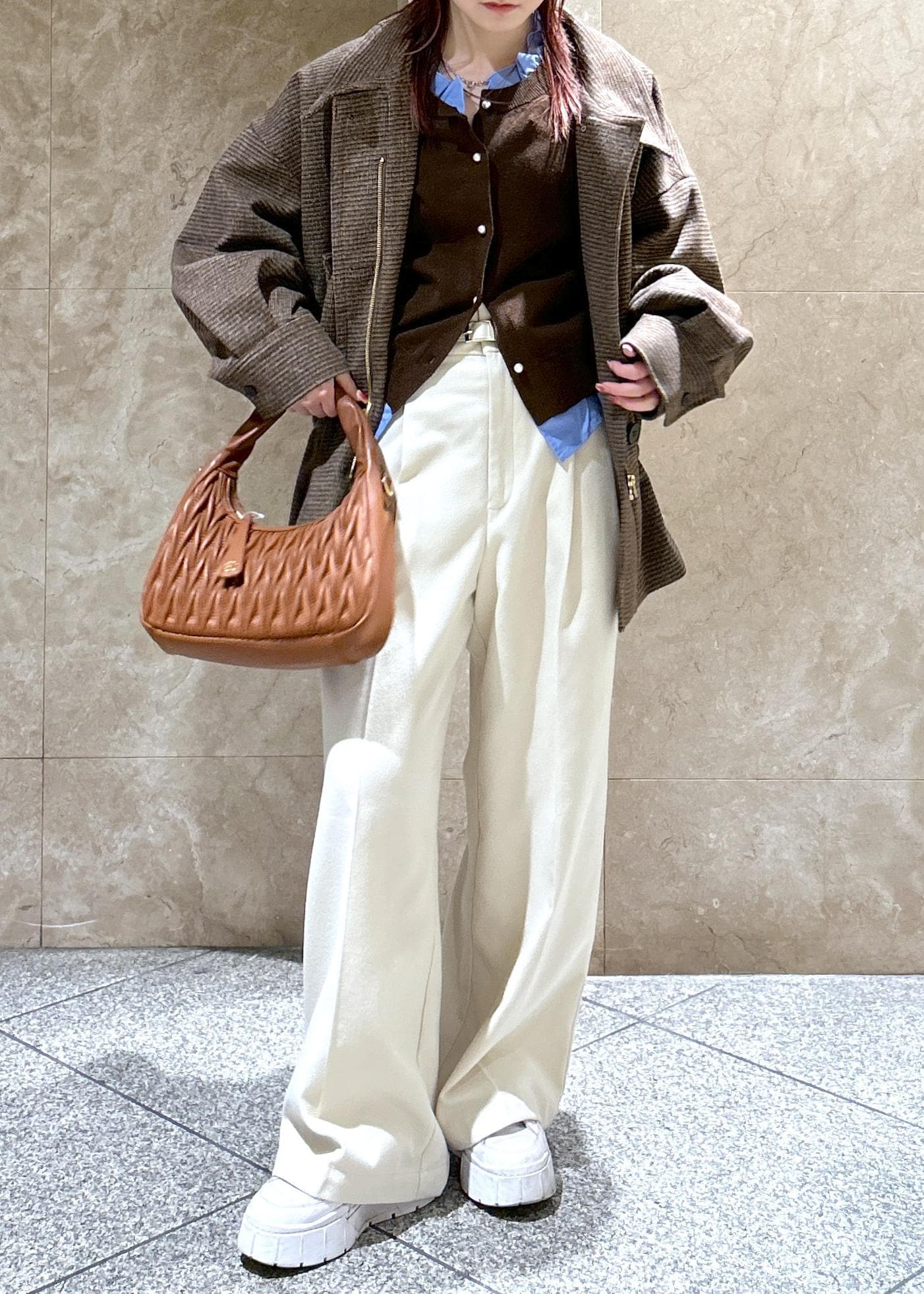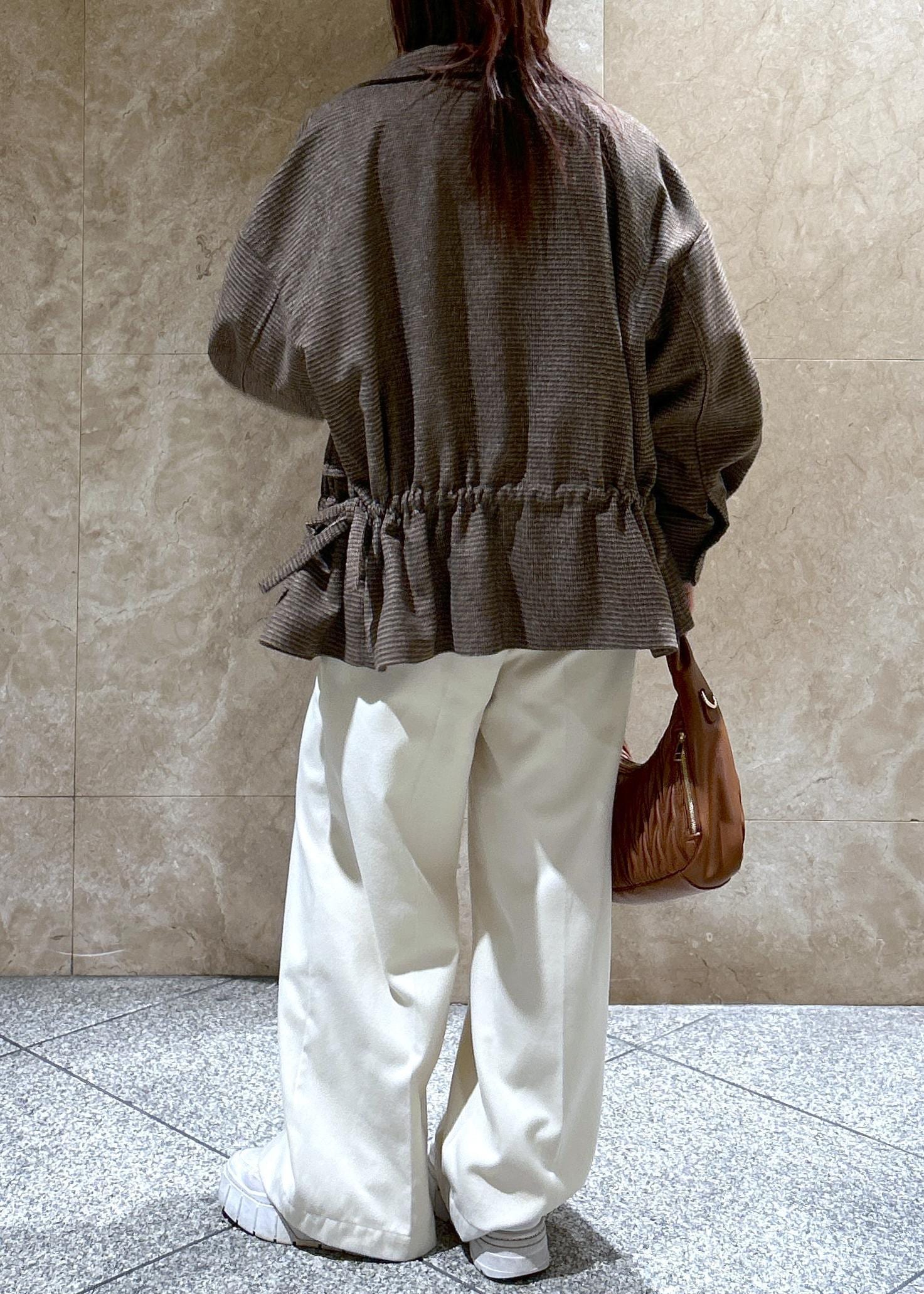 絞り加減でシルエットに変化を付けられるので、コーデの雰囲気や気分などで変えても◎