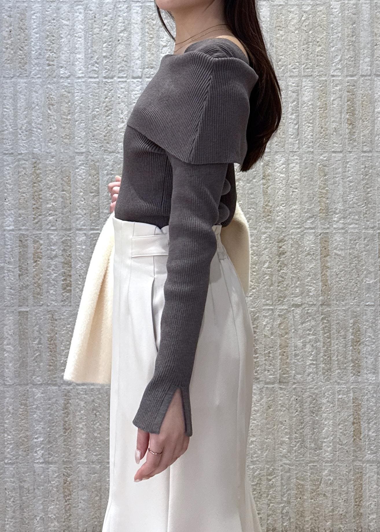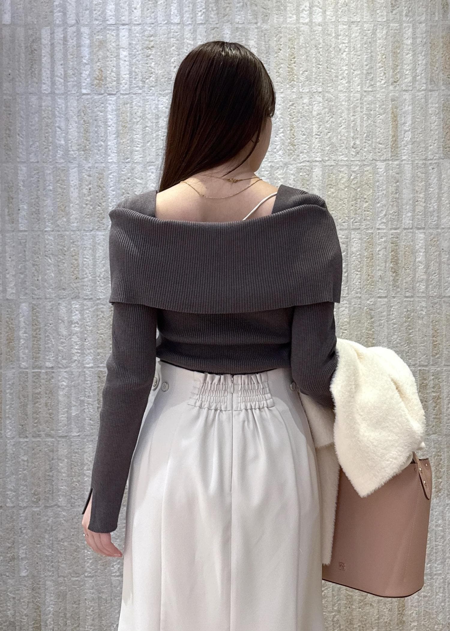 NEW!VIS【美得】オフショルダーモチモチリブニット/好評につき再入荷グレー / F¥5,489レビューマチ付きデザインなので、インナーが見えにくく肩が出過ぎないすっきりシルエット!