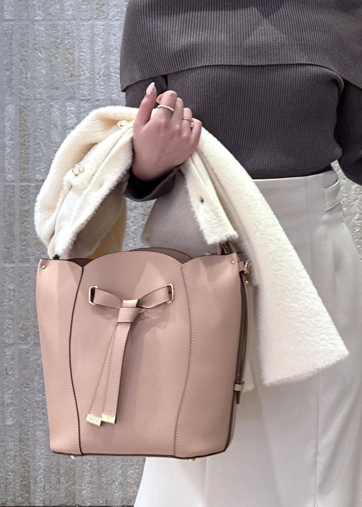 ポイントにフラワーバッグを持って、華やかさをプラス!
