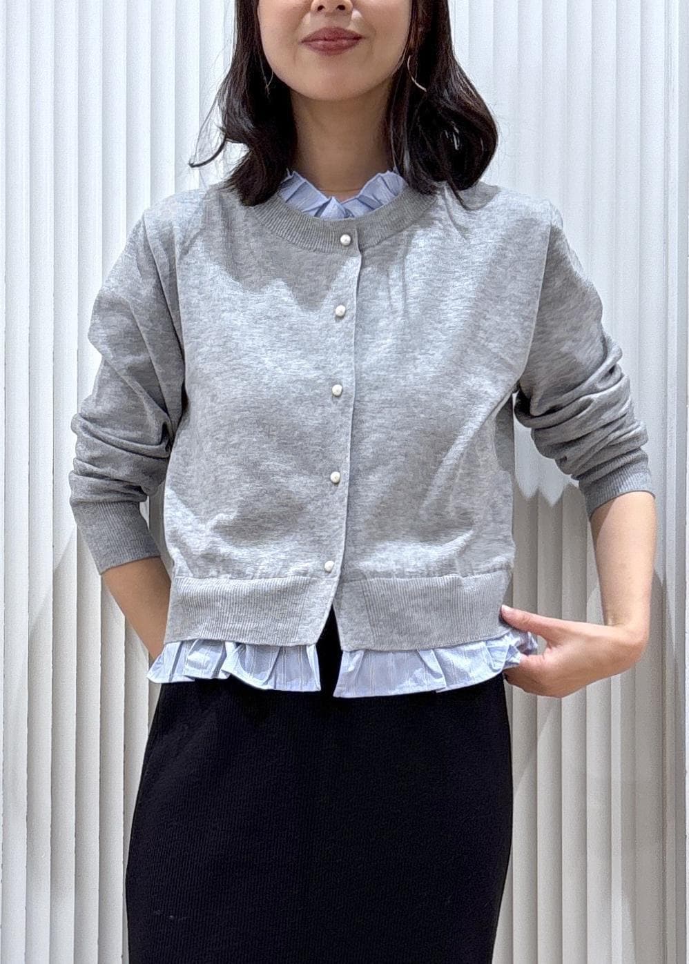 NEW!VIS【美得】フリル襟ドッキングニットカーディガントップスライトグレー / F¥5,929レビュー身長164cm、フリーサイズ着手です。