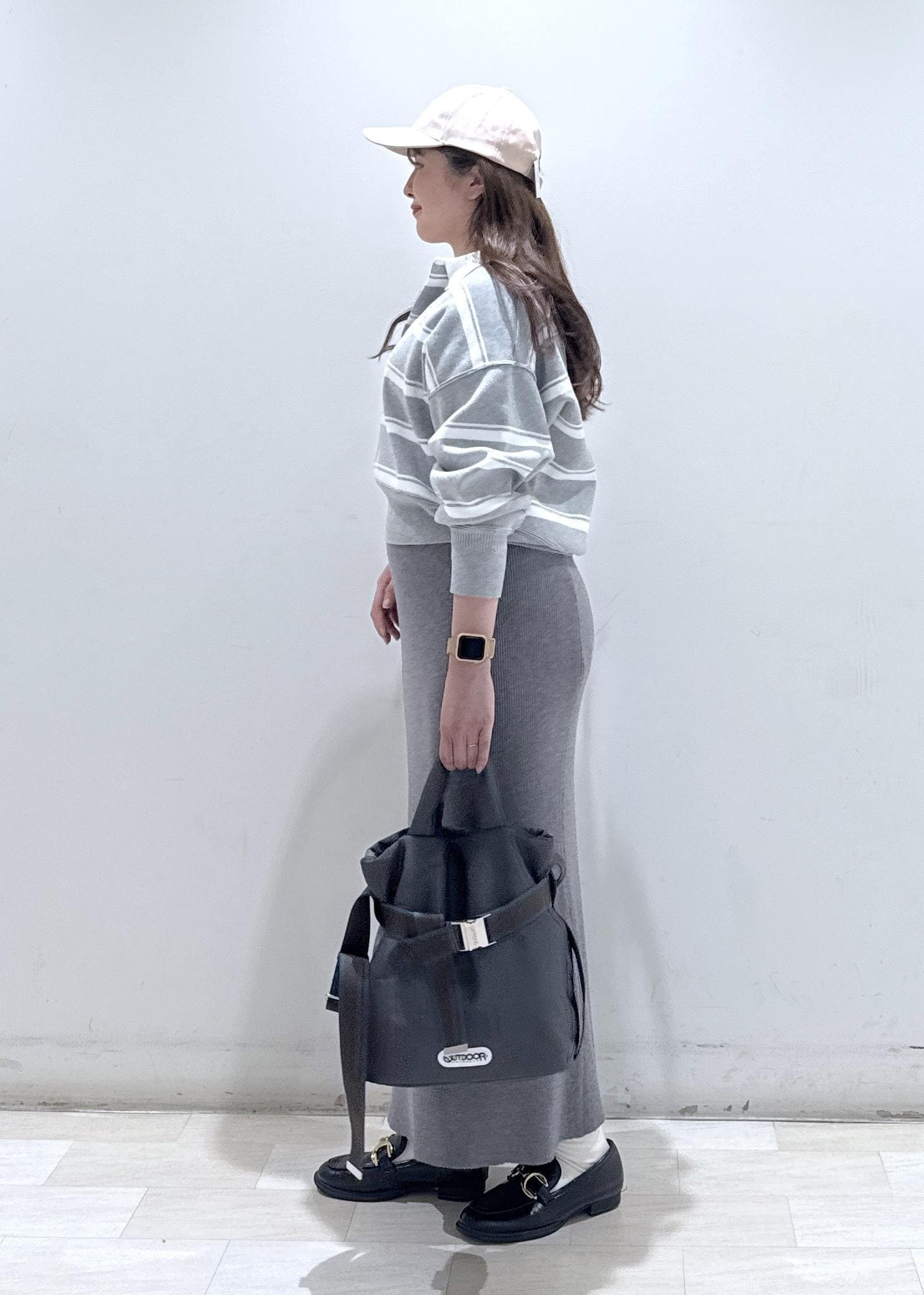 今回は新作で入荷しましたVIS×outdoorのコラボアイテムのバッグを使って、グレーのワントーンコーデにしてみました。