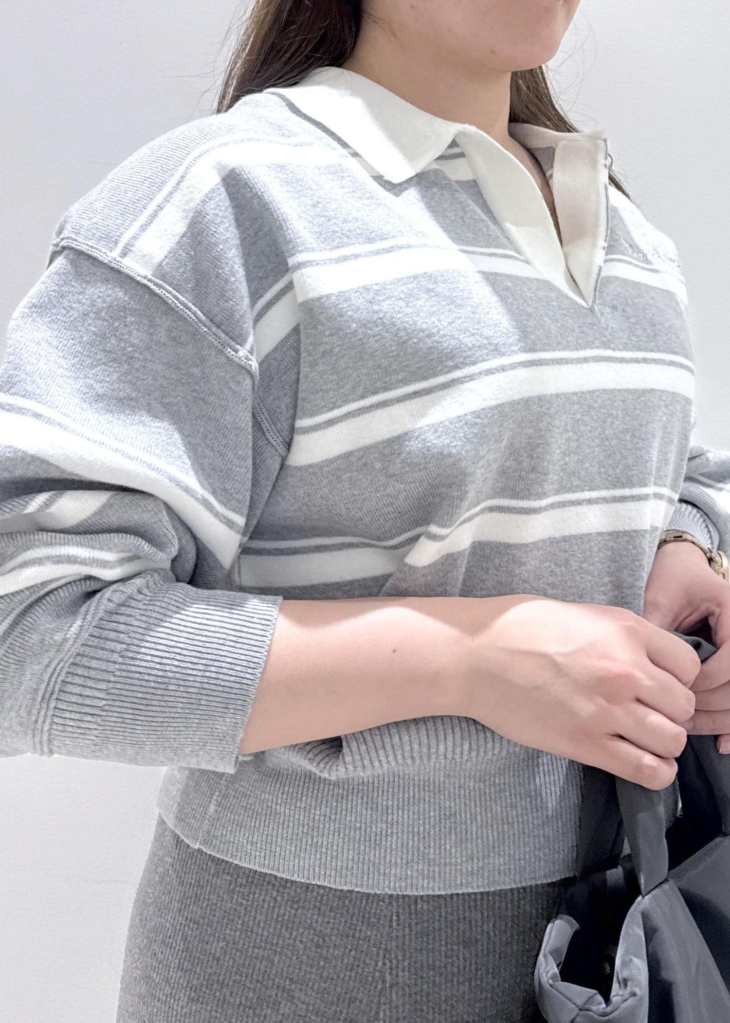 VISワンポイント刺繍ポロニットプルオーバーライトグレー / F¥6,589レビューたぽっとしたシンプルなデザインのプルオーバー⭐︎ワンポイントに胸元に刺繍があり可愛いです!生地感は分厚すぎずどちらかというと軽めでサラッとしているので、冬から春まで着れそうです。オーバーなサイズ感ではありますが、広めのVネックで首元に抜け感が出て骨格ストレートの私でもスッキリとして着ることができました。