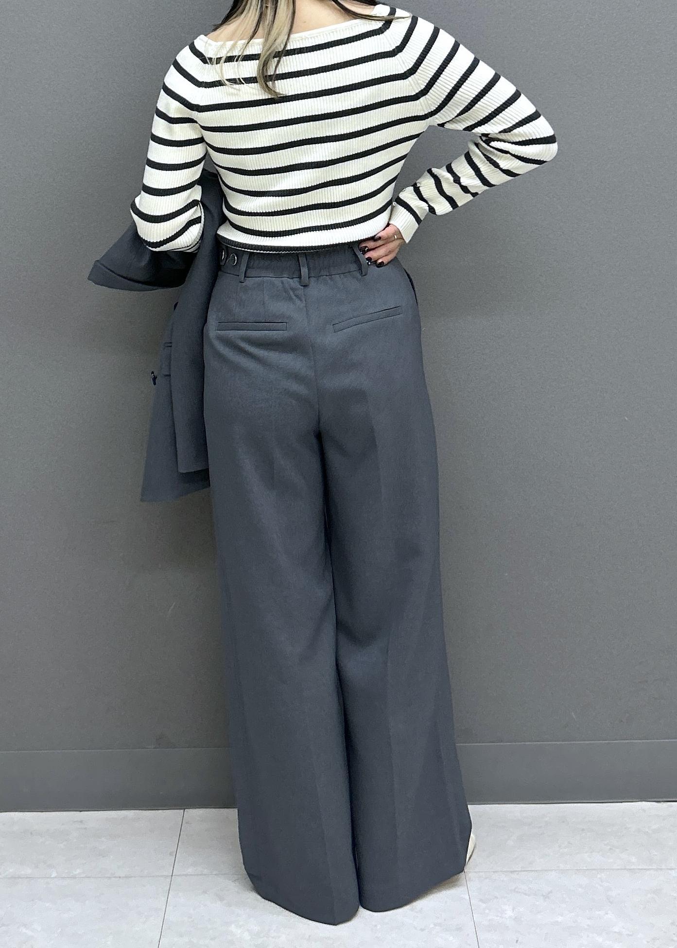 サイドボタンで調整もできるので、インスタイル、アウトスタイルに合わせてウエストサイズの調整もオススメです!