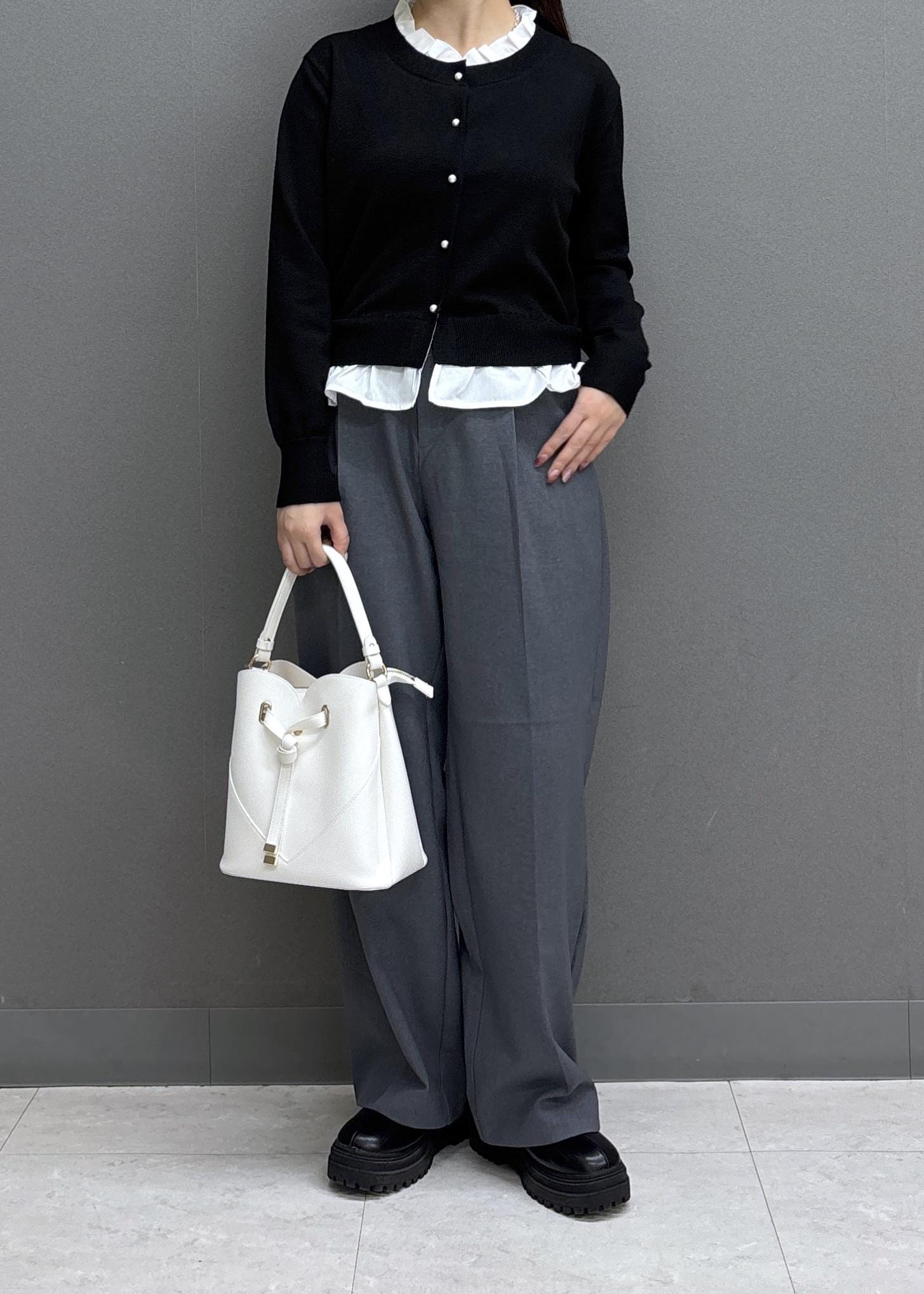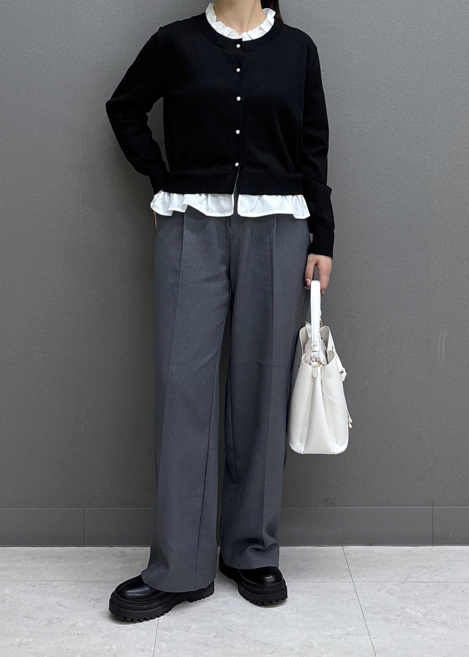 大人気のワイドパンツを合わせることできちんと感をプラス!