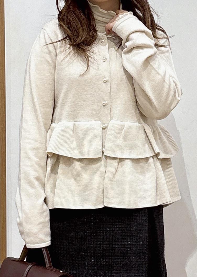 VISティアードペプラムニットカーディガンベージュ / F¥6,589レビュー【着用感】