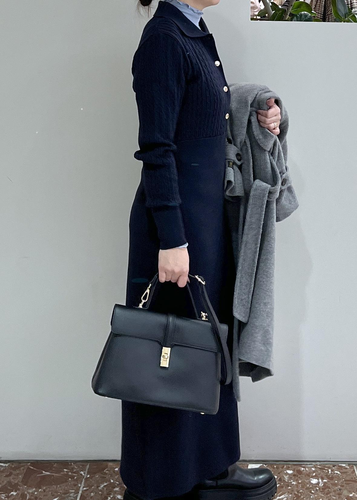 VISポロケーブルモチモチニットワンピースネイビー / F¥8,899レビュー157cmで足首くらいまでの丈で着られました。