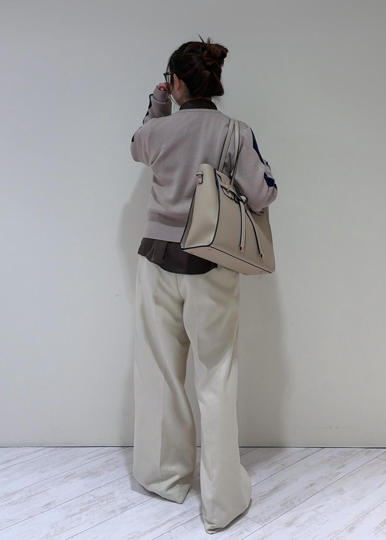 VIS起毛ウールライク版ベルトディテールタックワイドパンツキナリ / M¥5,271レビュー身長150センチ、Sサイズ着用で、くるぶし隠れる丈感