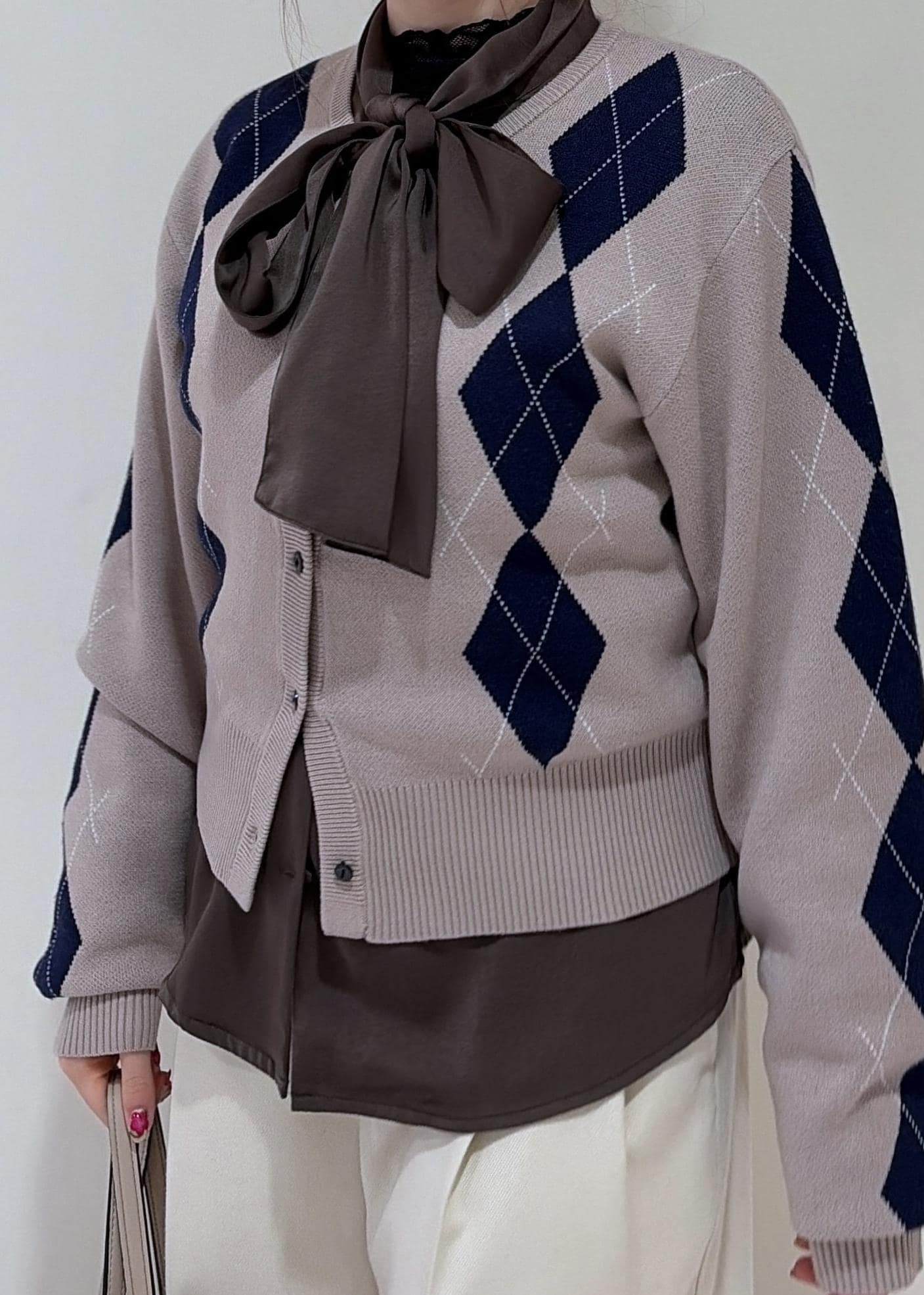 VISアーガイルカーディガンベージュ / F¥6,589レビュー身長150センチ、腰隠れる丈感