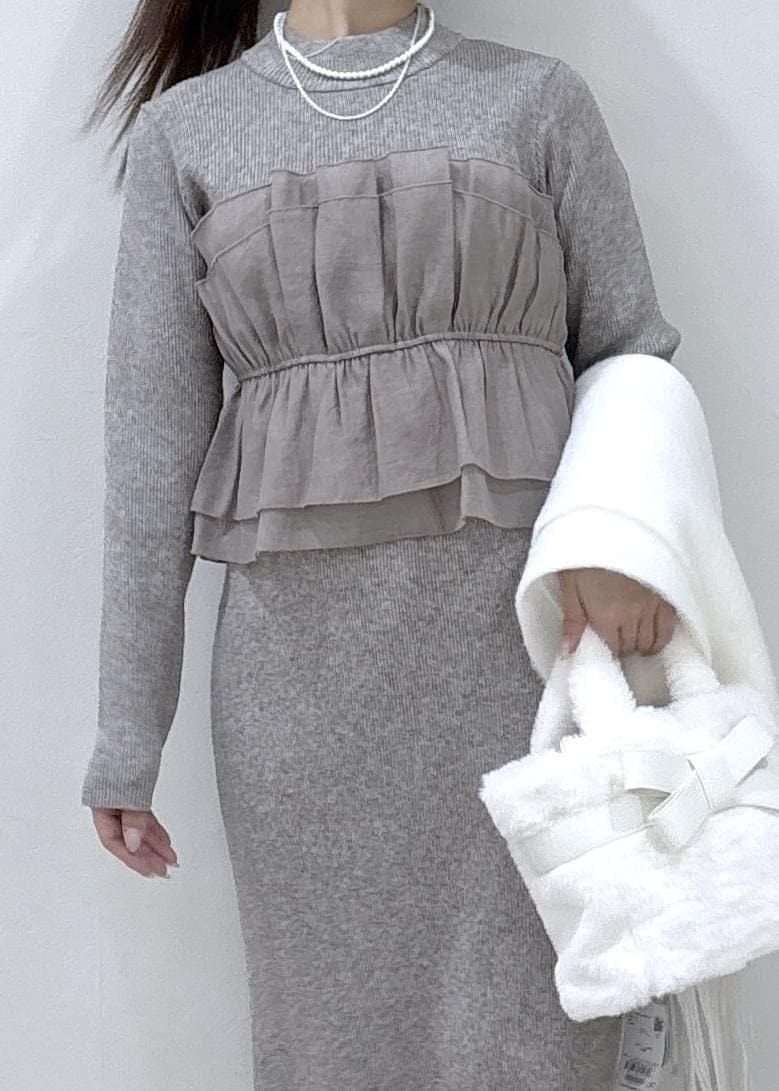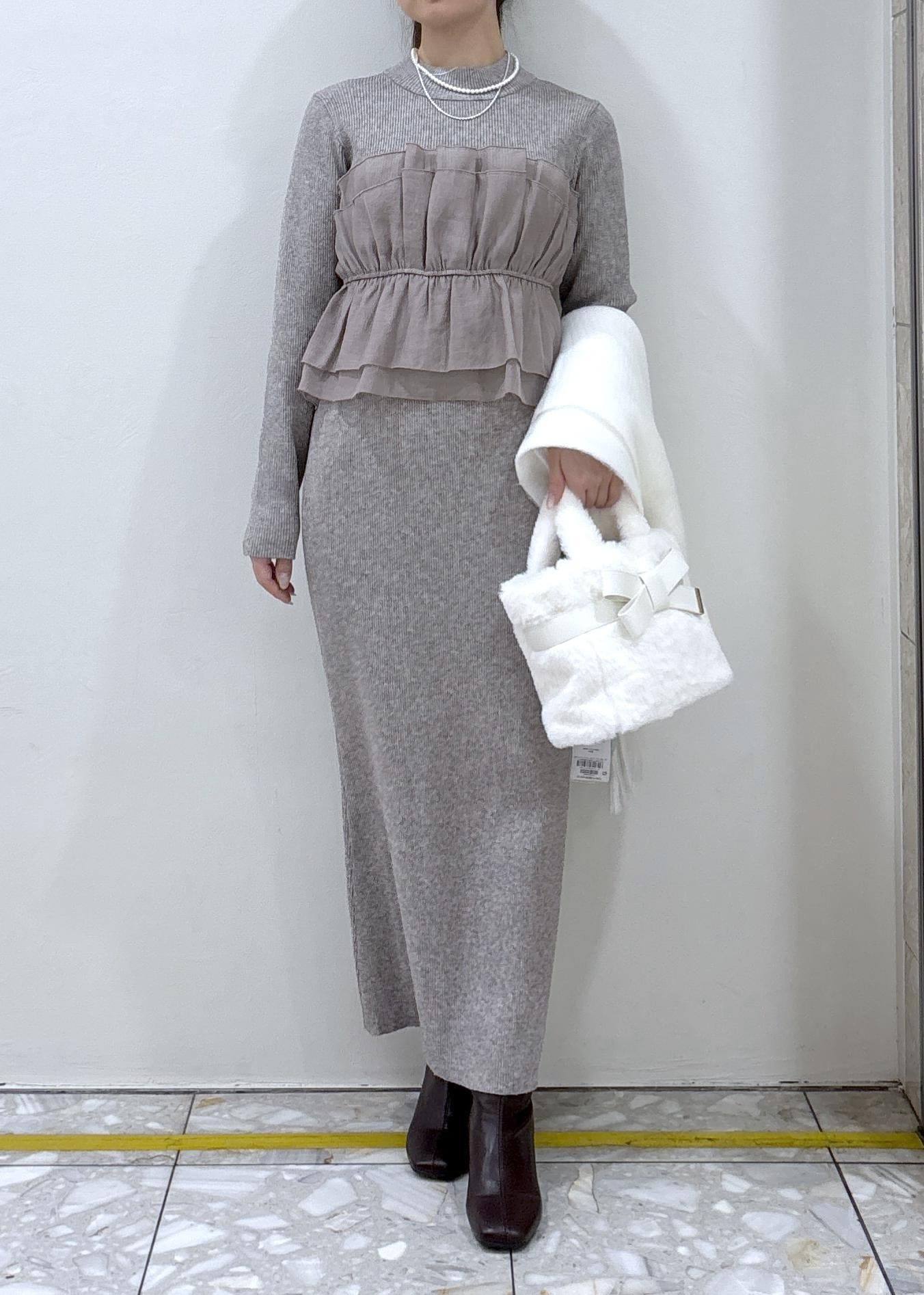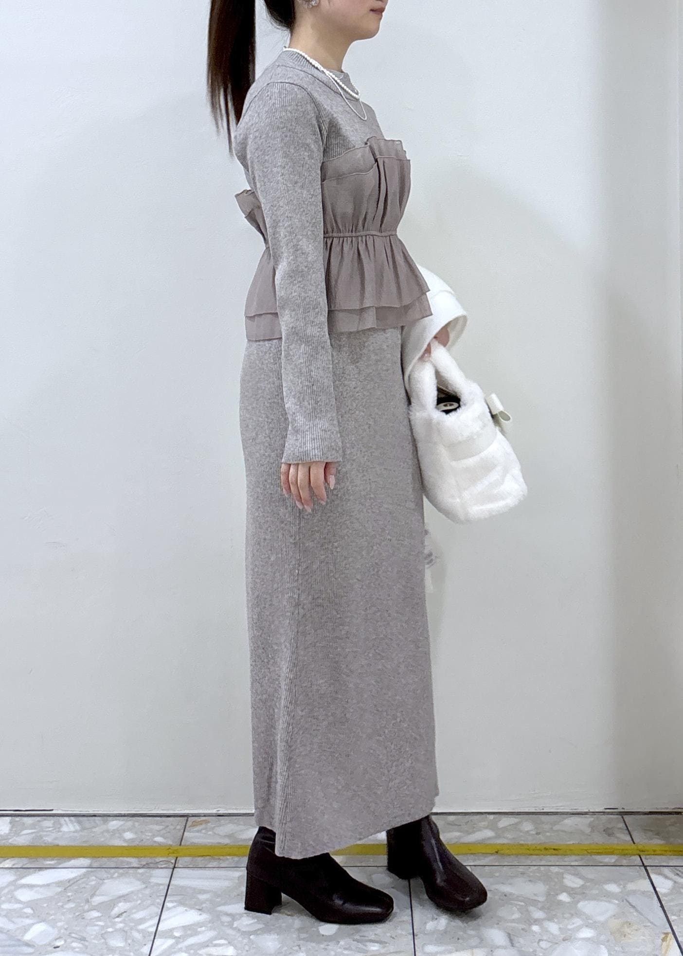 NEW!VIS【美得】ビスチェドッキングニットプルオーバー/セットアップ対応ベージュ系 / F¥5,489レビューもちっとなめらかなリブニット。着丈は腰くらいなのでボトムインしてよりスッキリ着用できます◎