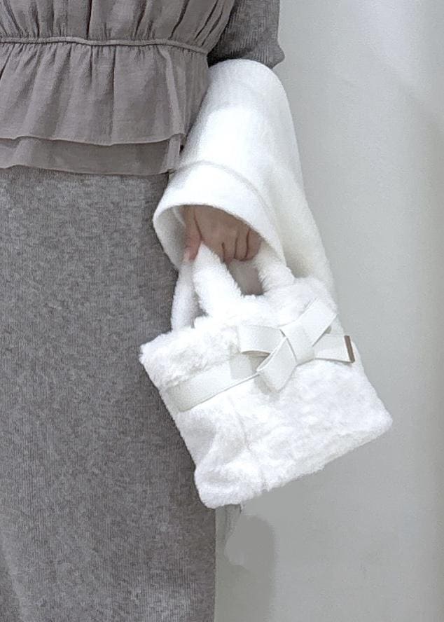 VIS【2WAY】ファーリボントートバッグキナリ / F¥6,919レビューもこもこ感が可愛いバッグ。ショルダーもついているのも嬉しいポイント!