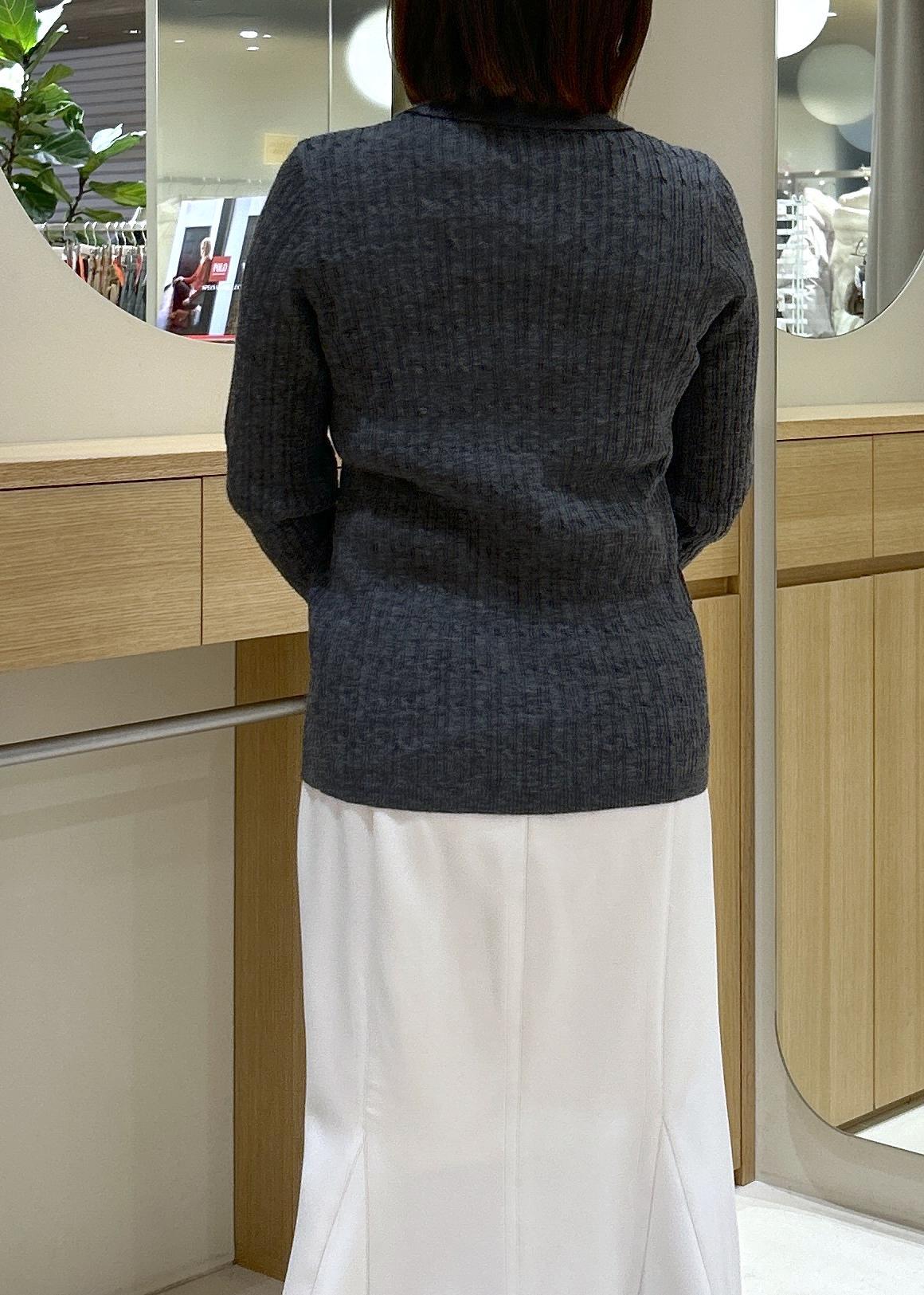今年らしさのあるケーブル編みのポロ衿カーディガン。