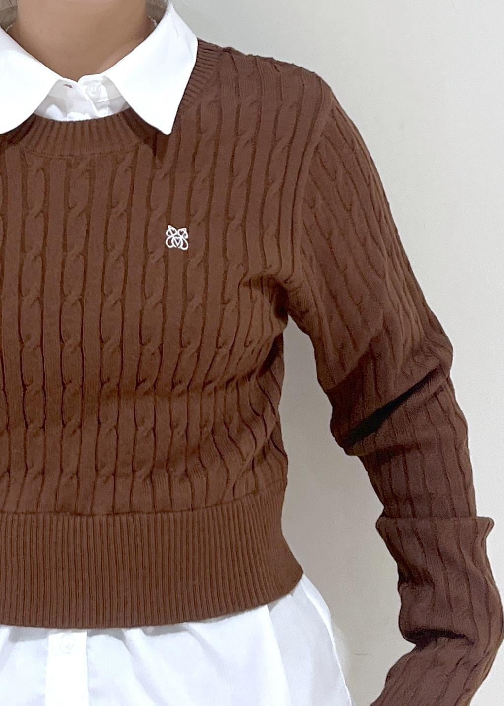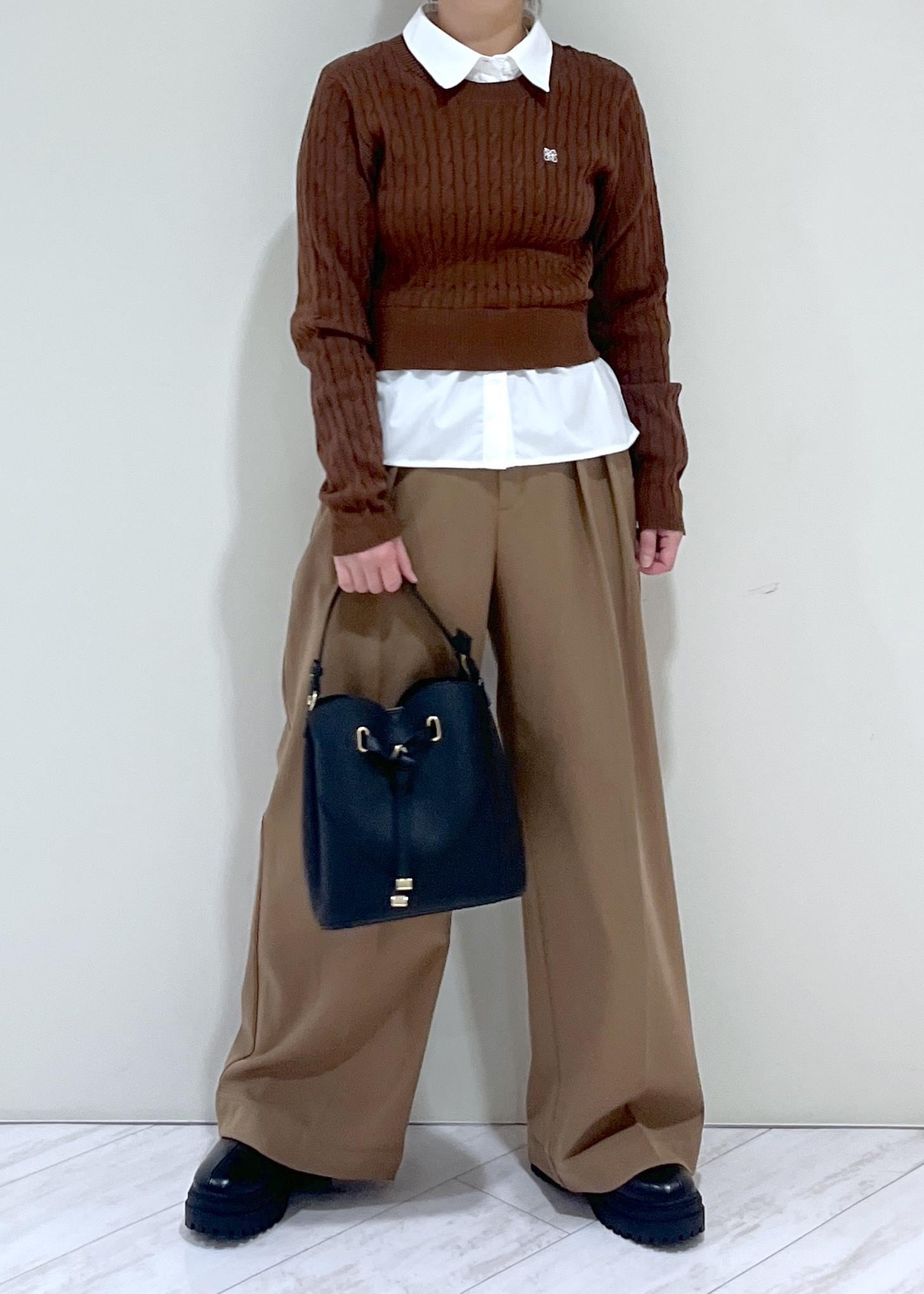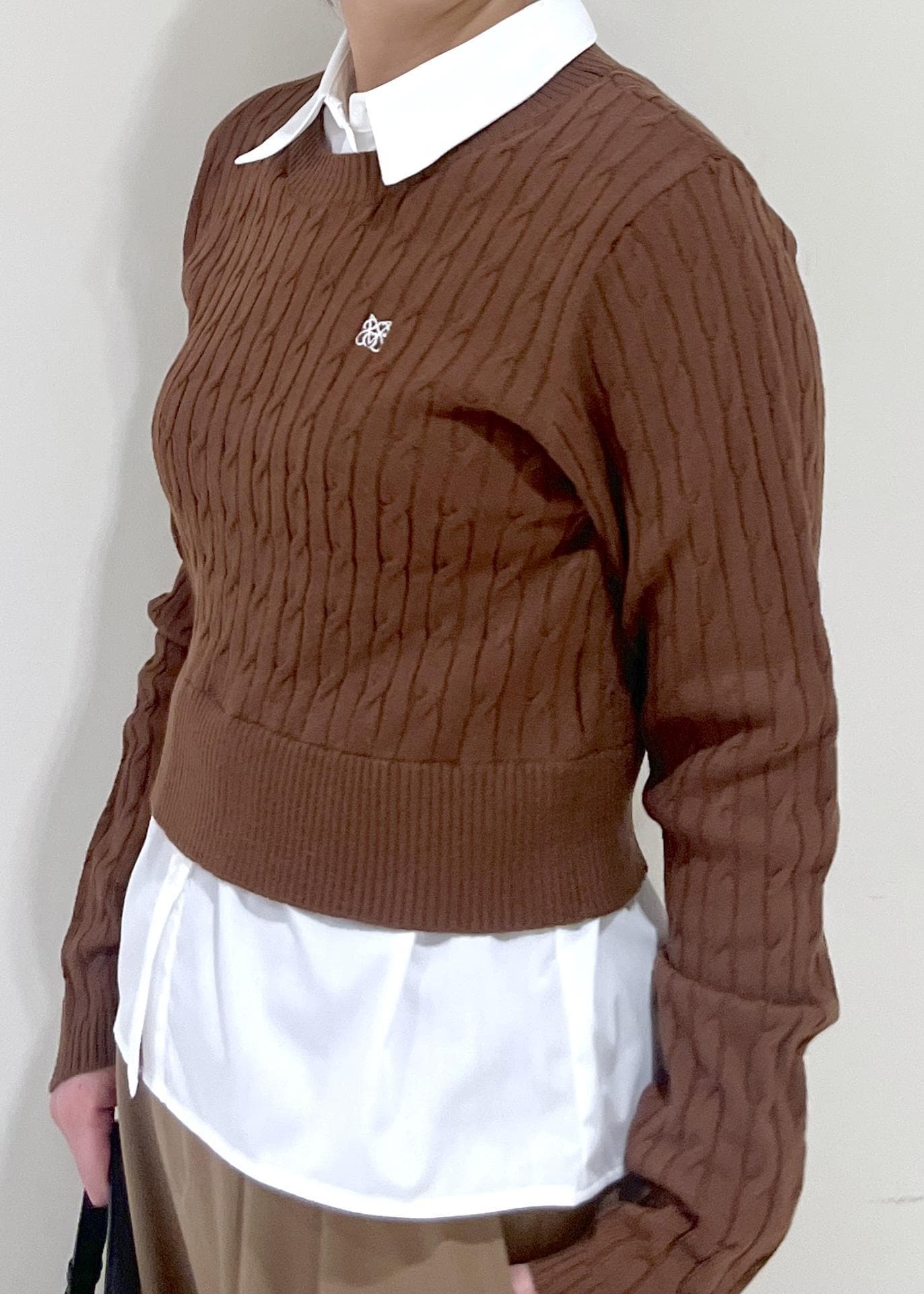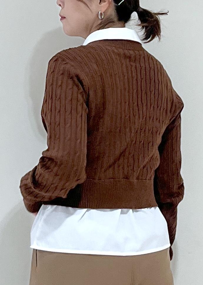 NEW!VIS【美得】ハイゲージケーブシャツドッキングプルオーバーダークブラウン / F¥5,489レビュートレンドのケーブルニットにシャツのレイヤードが叶うドッキングニットです。