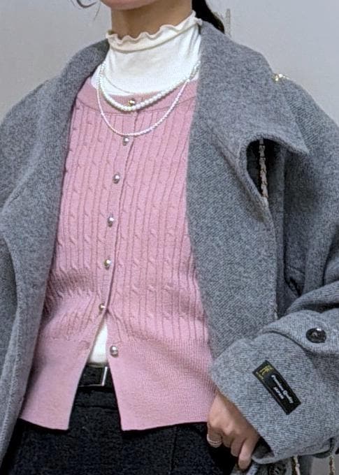 VISケーブルコンパクトカーディガンピンク / F¥5,489レビュー167cmの身長で膝下の長さでした。