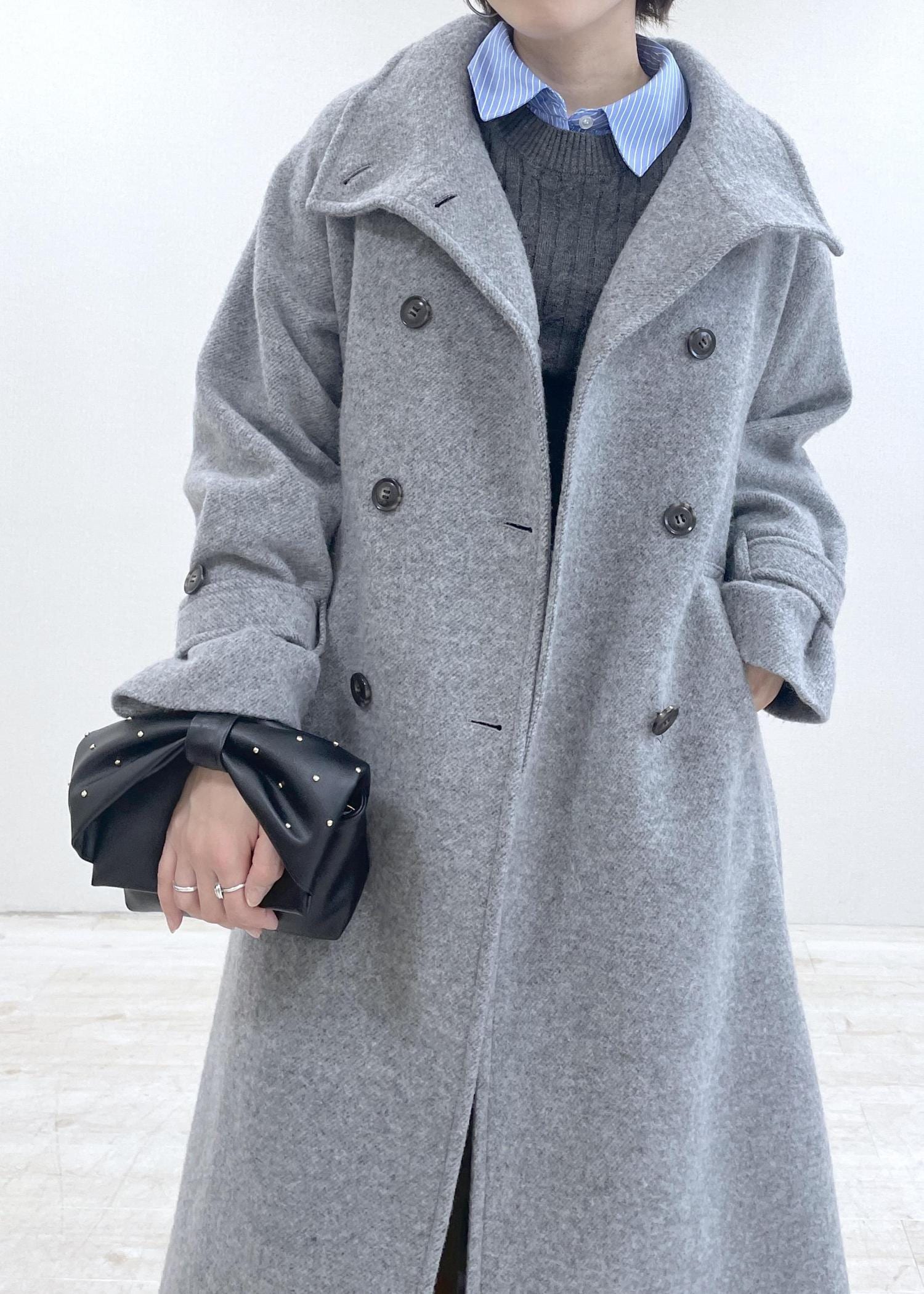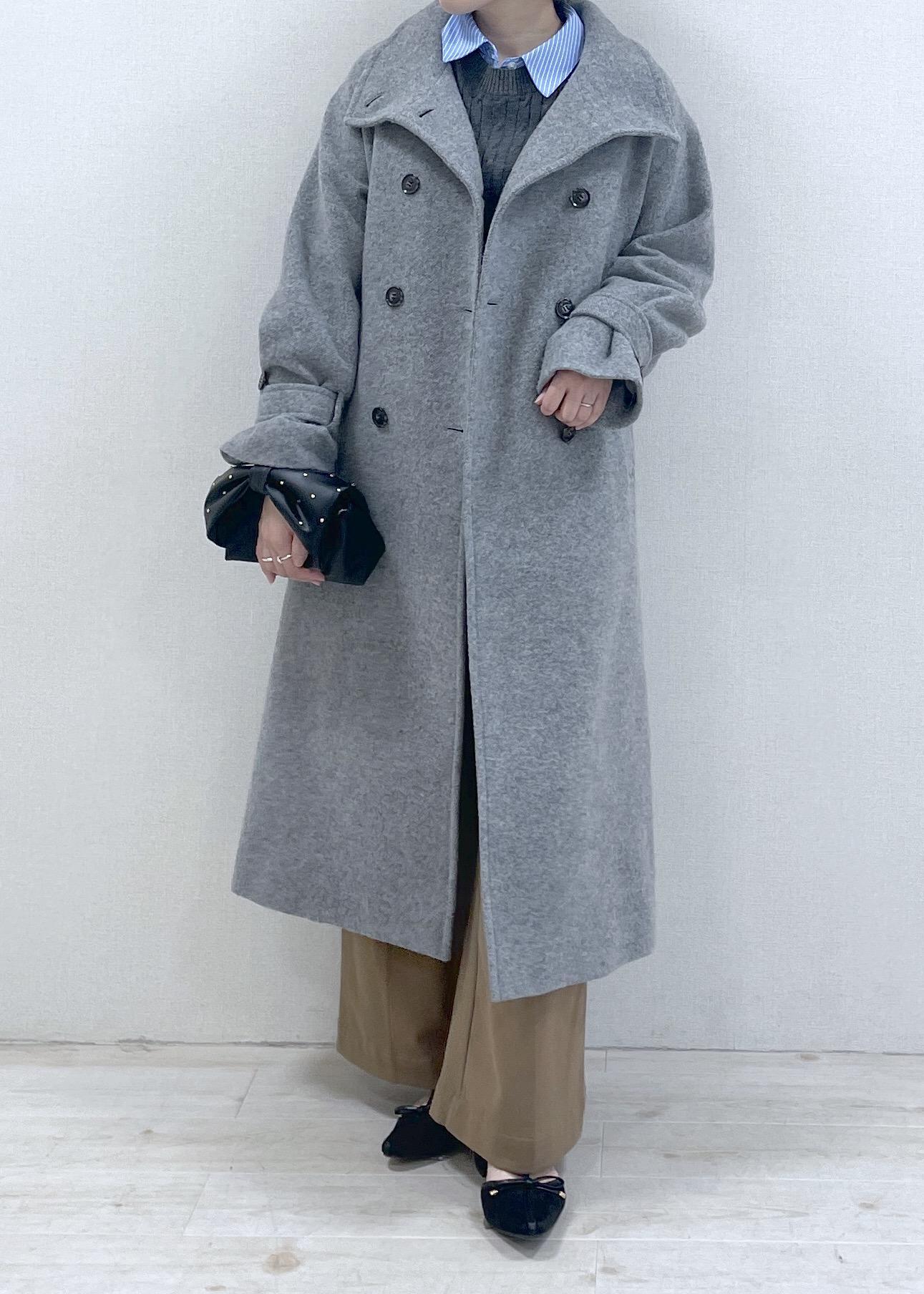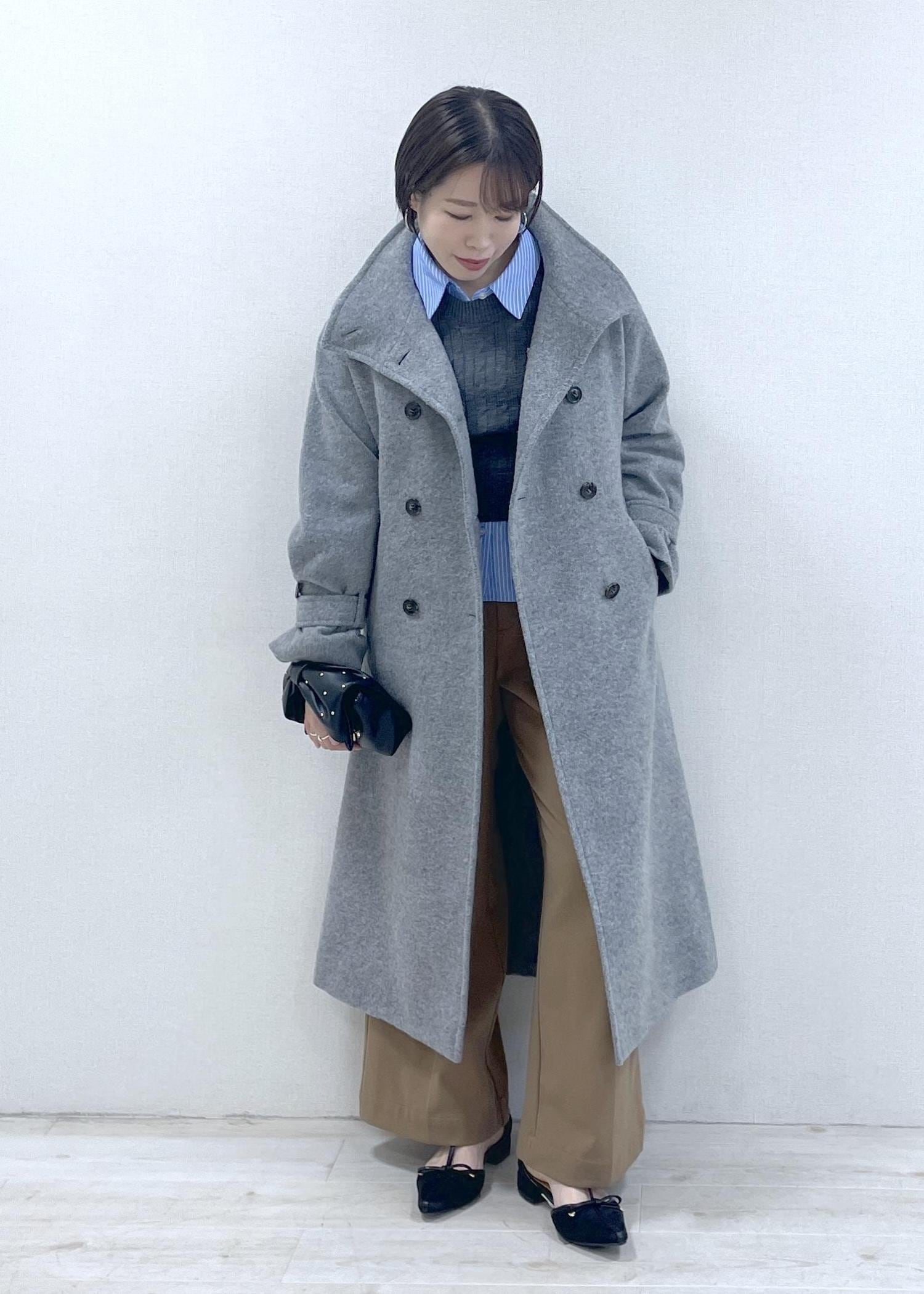 スタンドカラーにもなるので、マフラーいらず、大きめな襟は小顔効果もあります◎ -