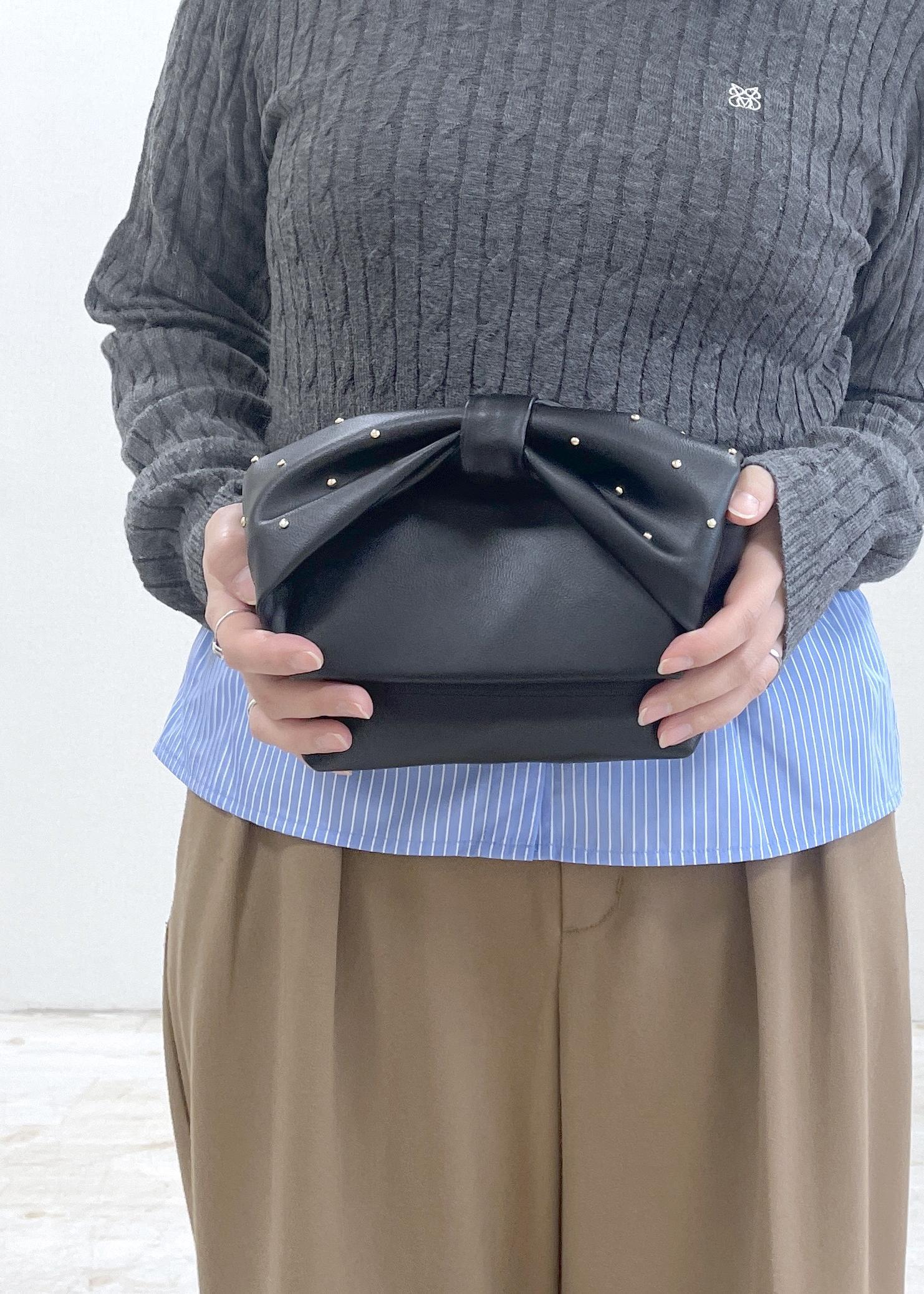 VISリボンハンドルチェーンショルダーバッグ/2WAYブラック / F¥5,929レビュー小ぶりですが、リボンのモチーフがコーデのアクセントになる、存在感あるバッグです。