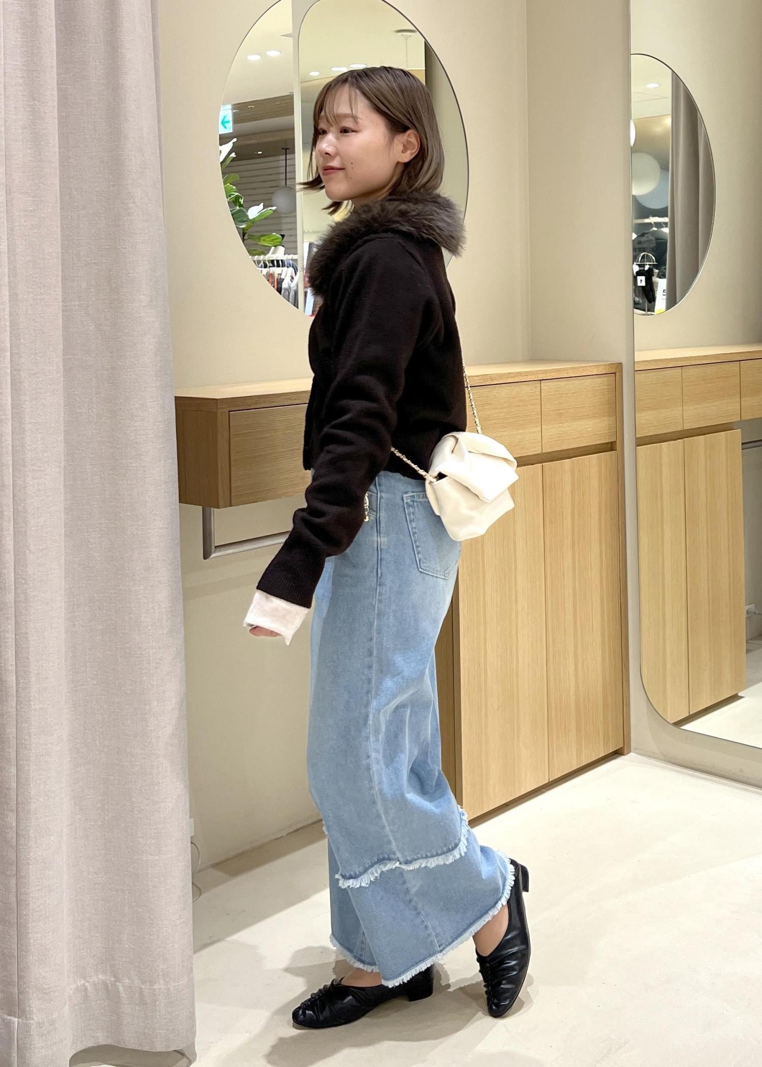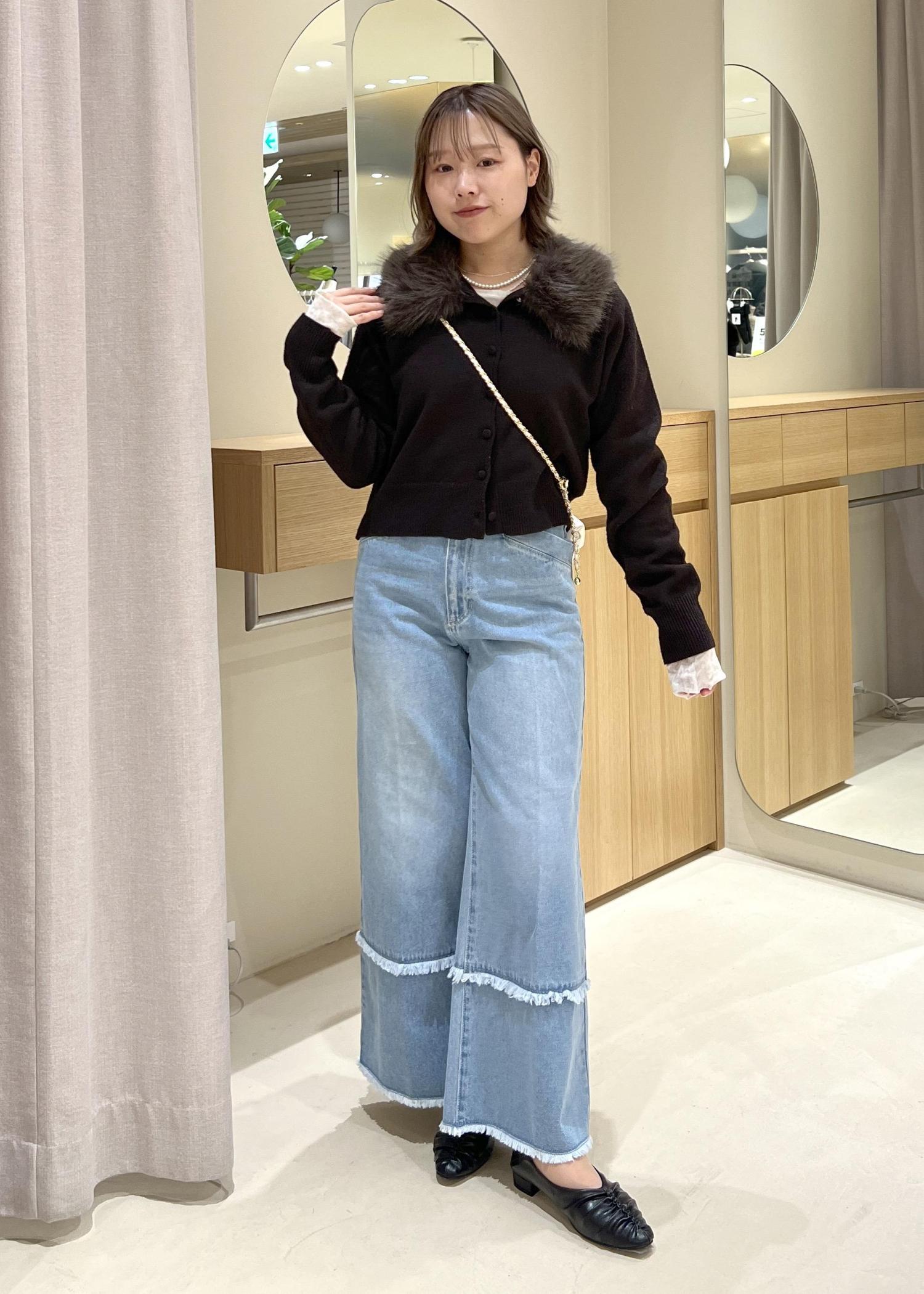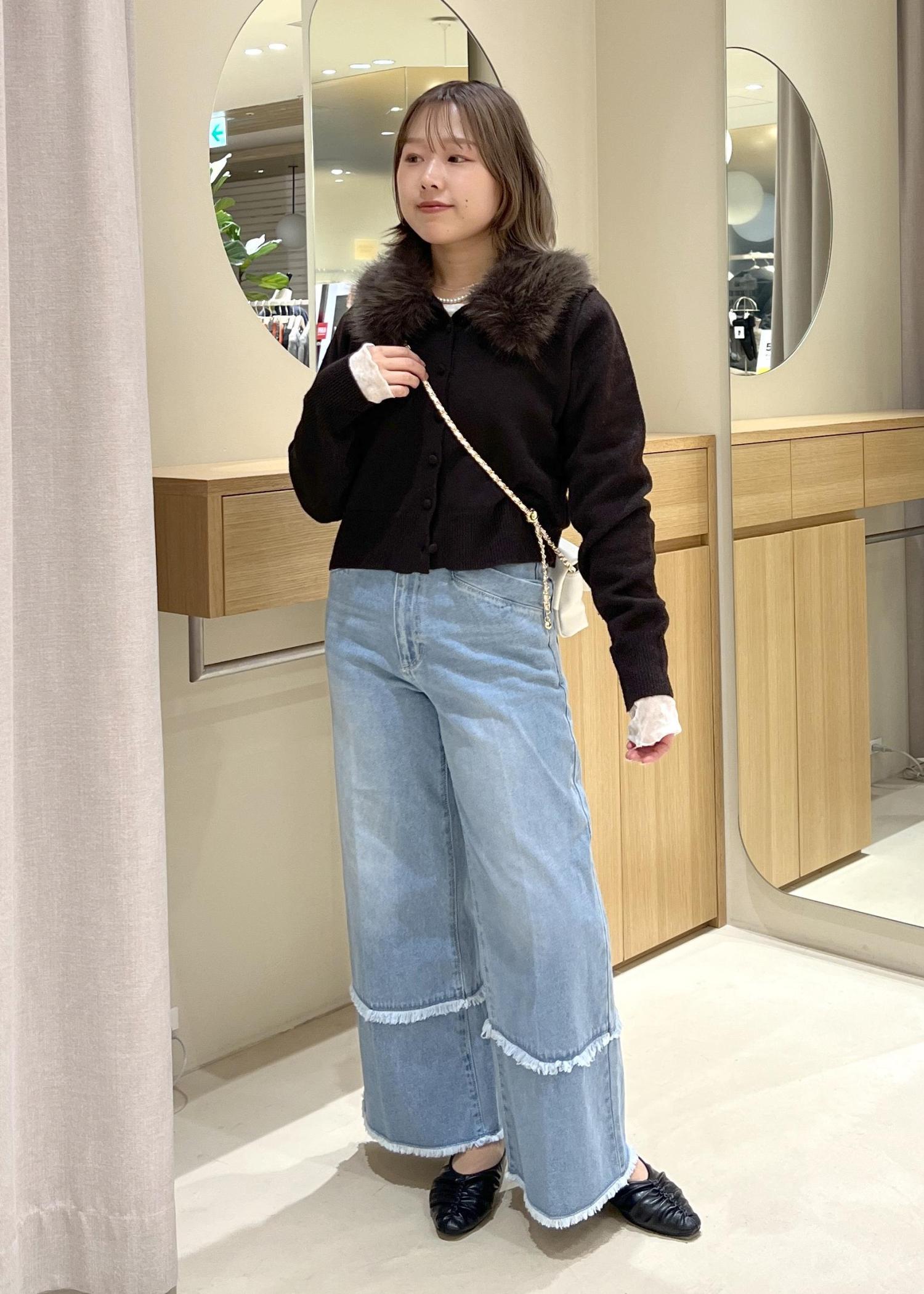 ファーカーデ×デニムでフェミニンカジュアルコーデ☆