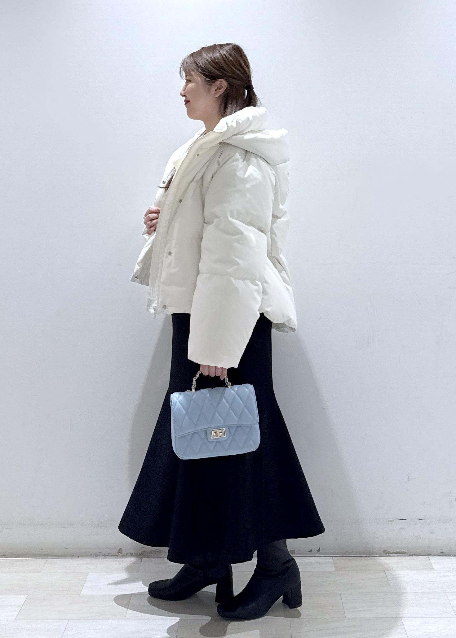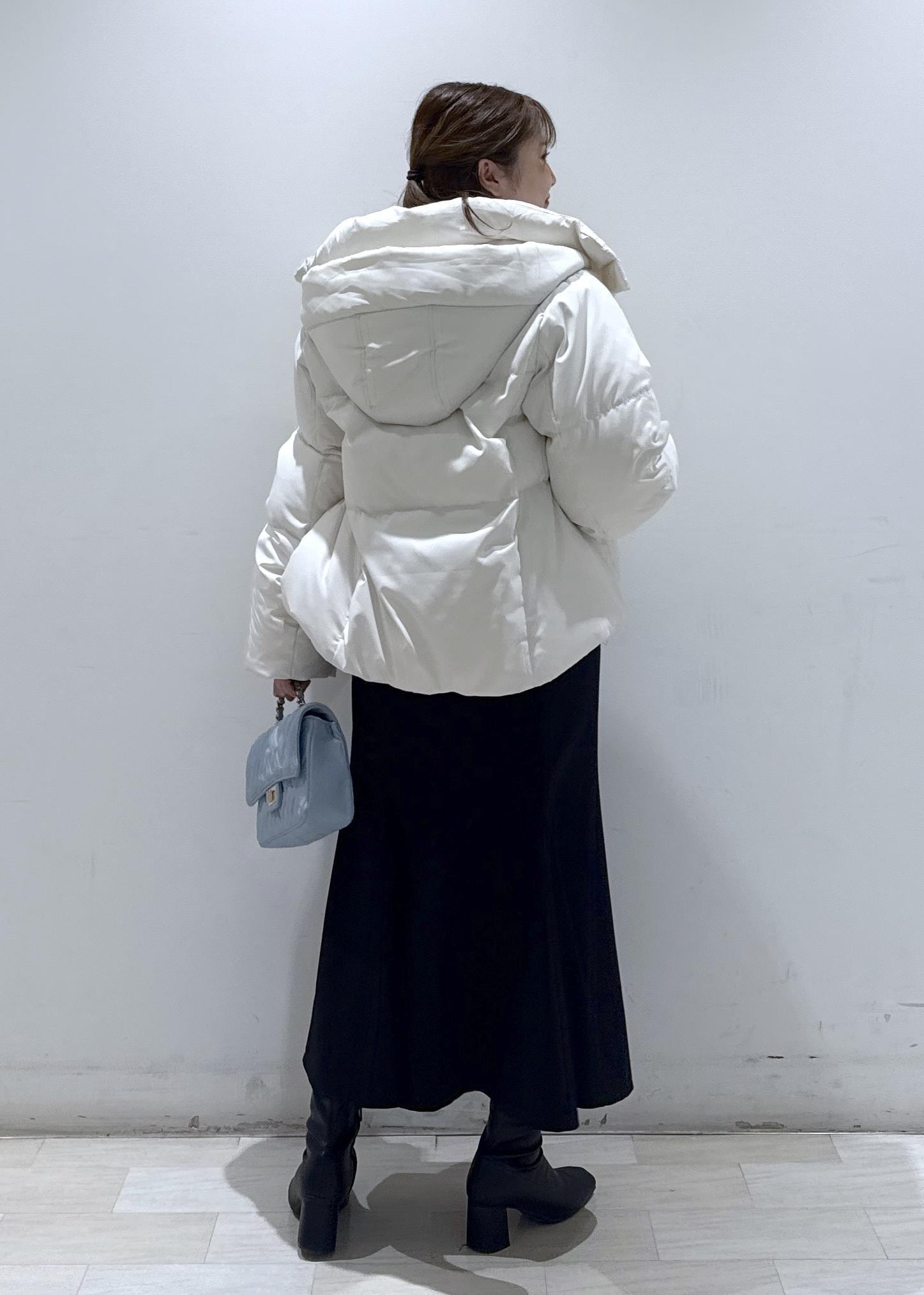 身長157cm/Mサイズ着用。お尻周りがちょうど隠れるぐらいの着丈。見た目よりもふわっとボリュームもあり、軽くて暖かいです!お袖の脇部分も意外とたっぷり余裕があるので、分厚めなニット素材のトップスを着てもかさばることはなさそうです。雨の日でも使える撥水加工と自宅で手洗いが可能◎お洋服に合わせて、後ろのフードが取り外せるのでワンピースやスカートの時は外していただくと綺麗めにも使えます。
