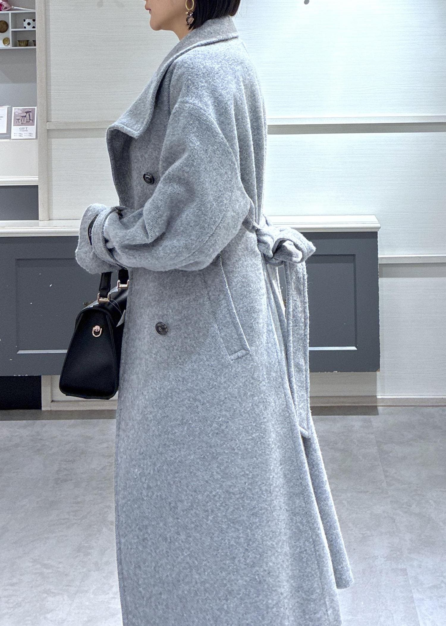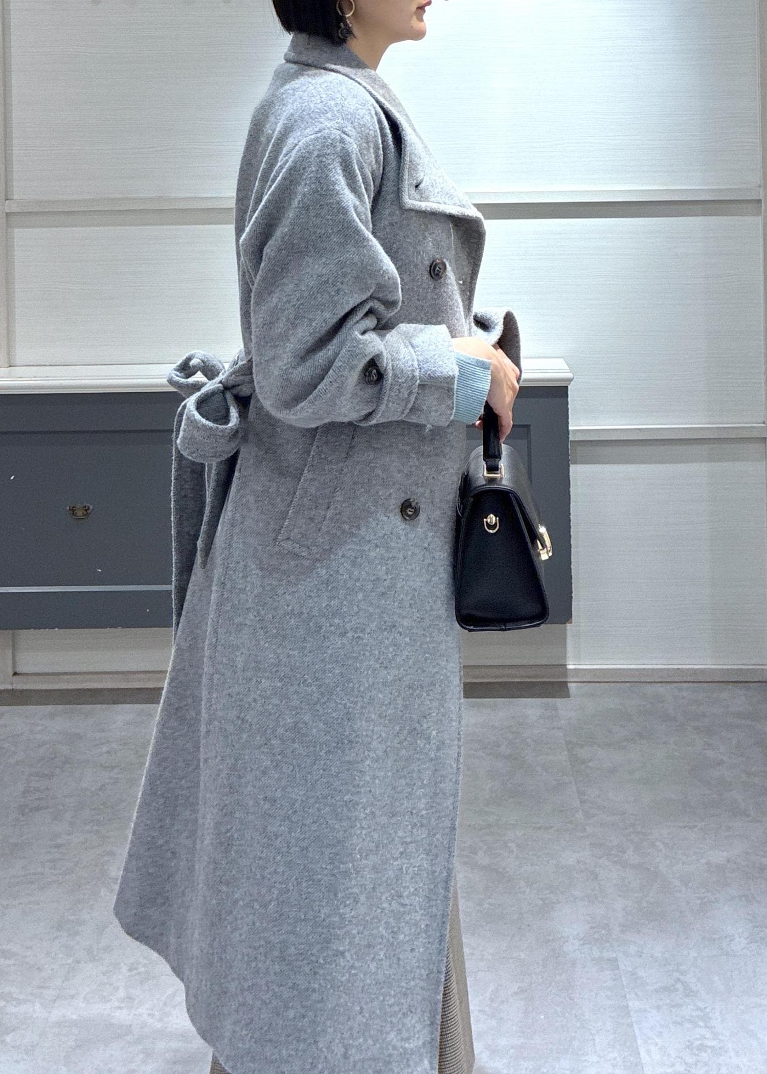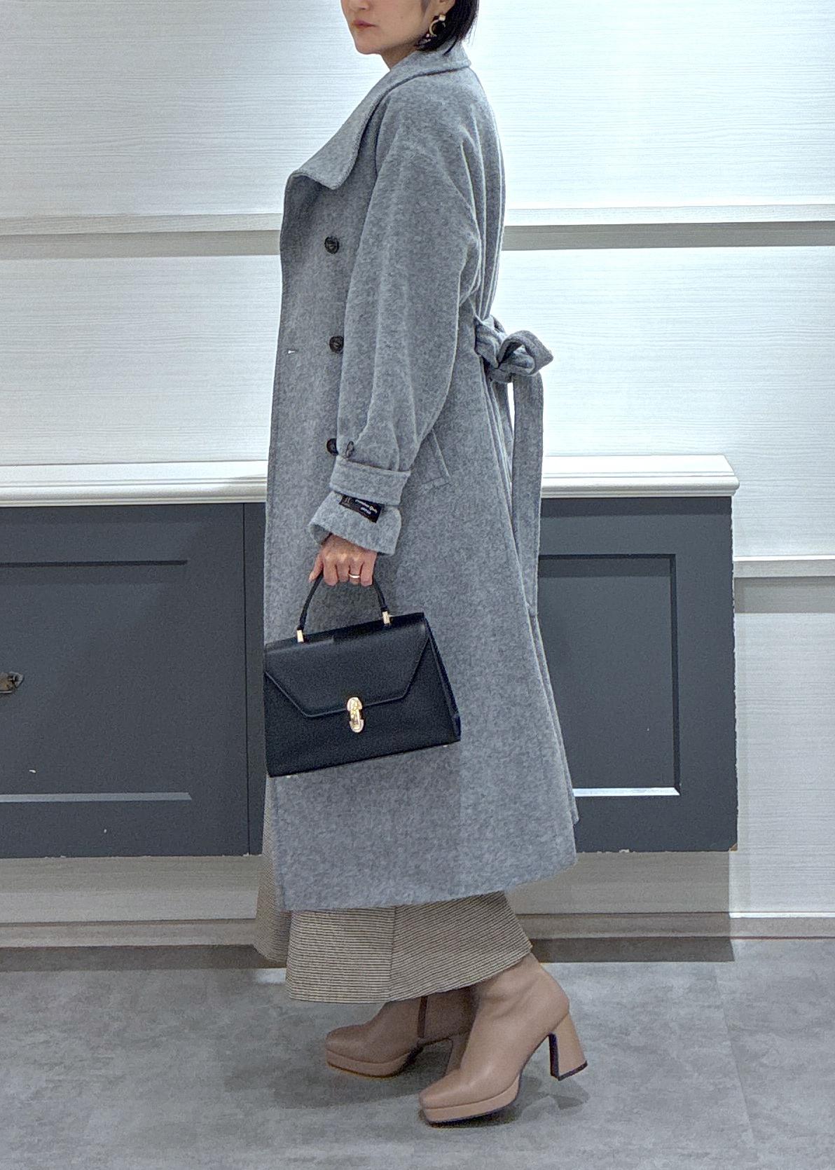 寒い日に大活躍のロングコートをフェミニンに着こなしたかったのでマーメイドスカートをボトムスに選びました♪