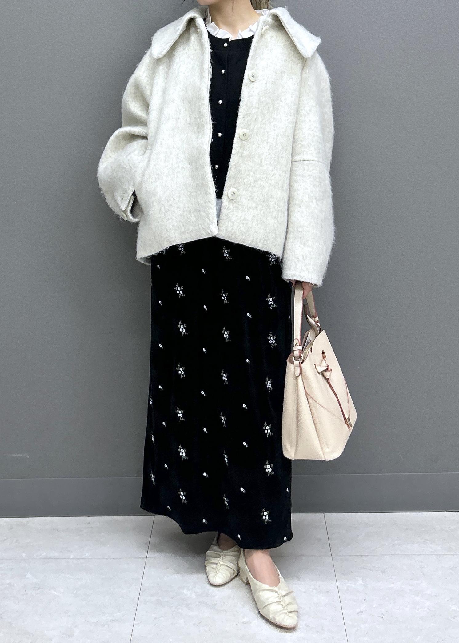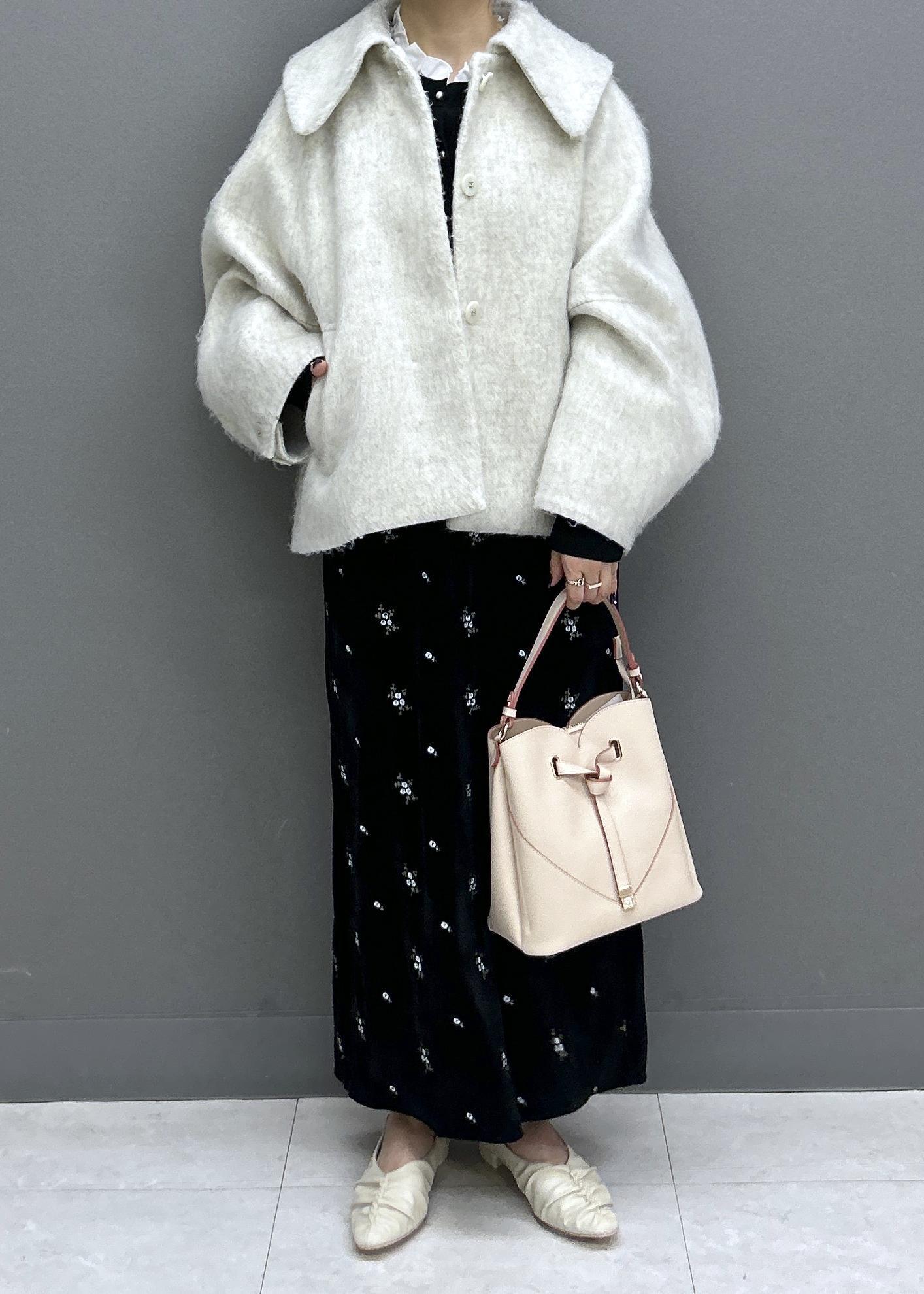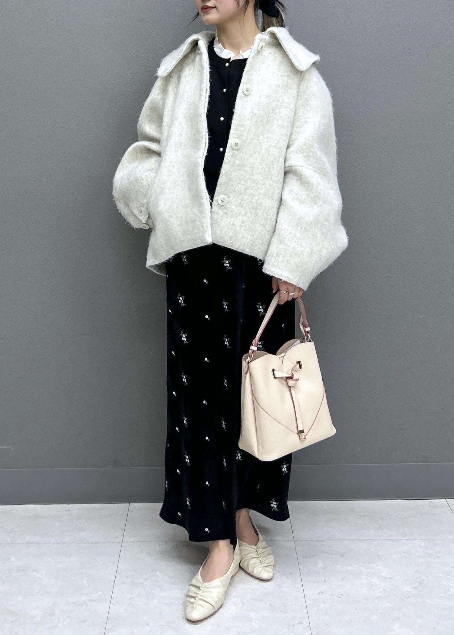 Iラインでスッキリしているので、モモンガコートで程よいボリューム感をプラス!シルエットがとっても可愛いです♡