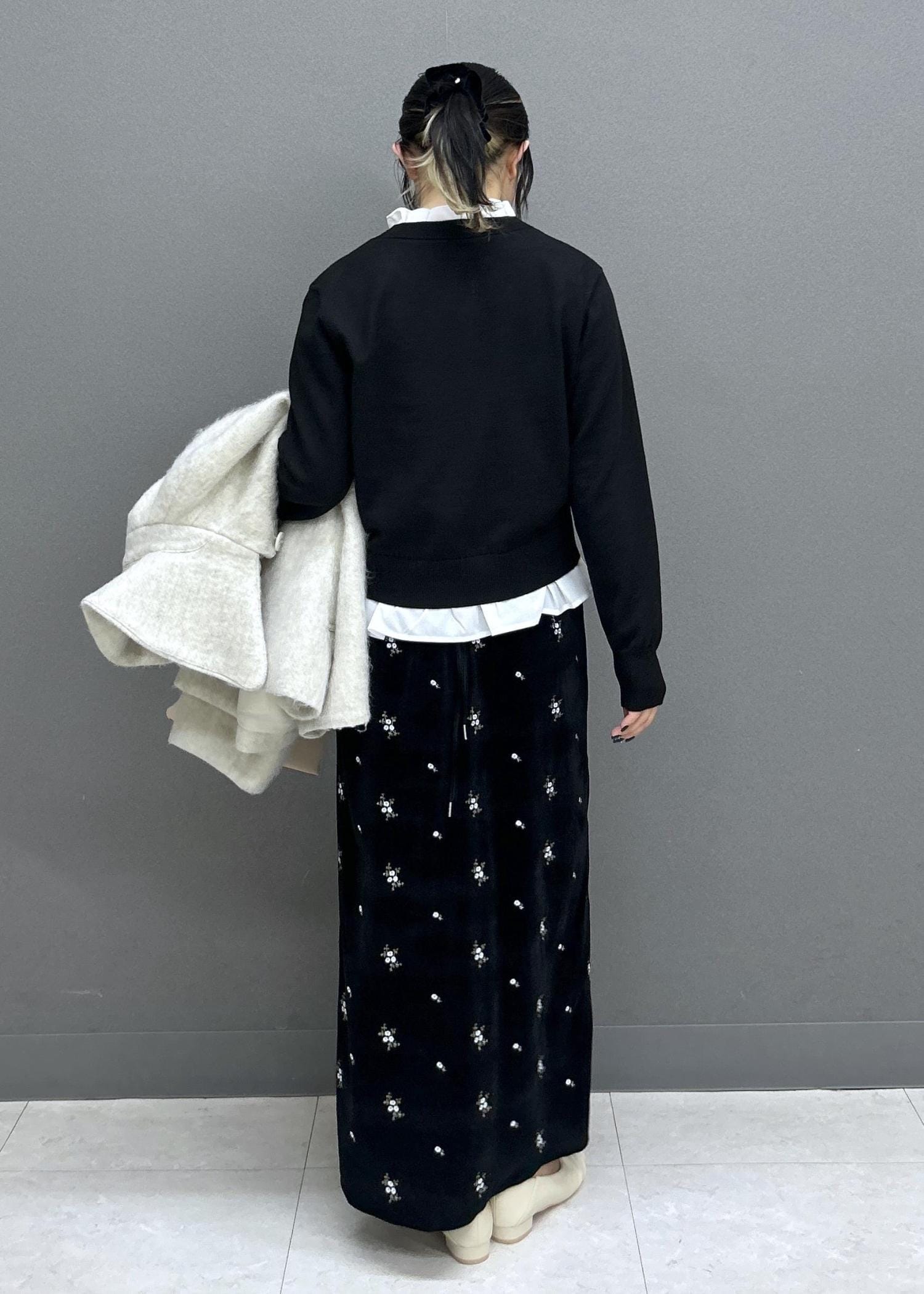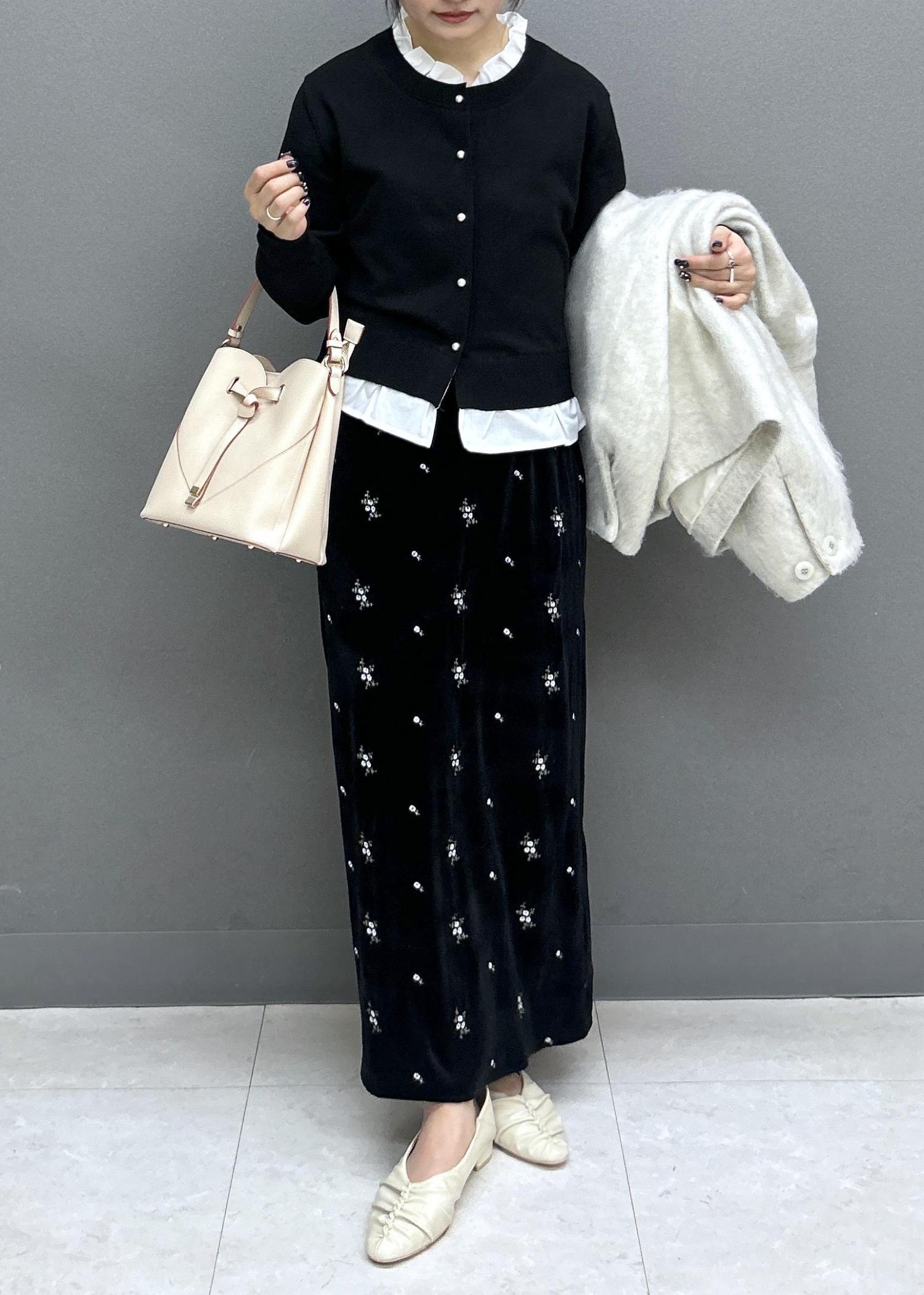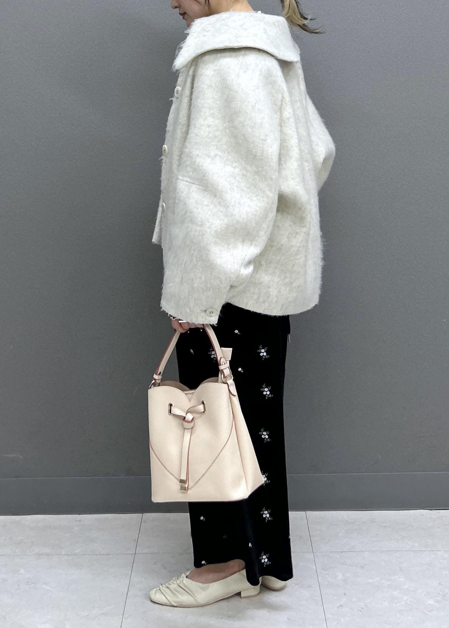 Iラインでスッキリしているので、モモンガコートで程よいボリューム感をプラス!シルエットがとっても可愛いです♡