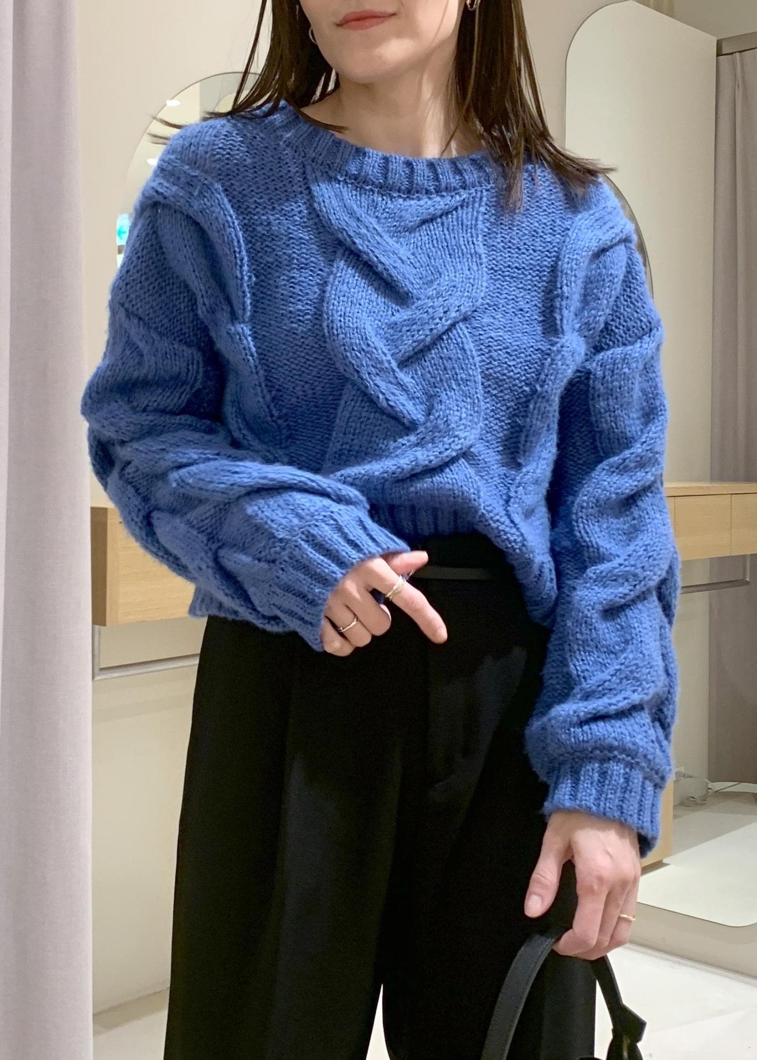 VISケーブルコンパクトニットブルー / F¥4,743レビューざっくり着れるプルオーバー型でも、着膨れ感は感じませんでした。