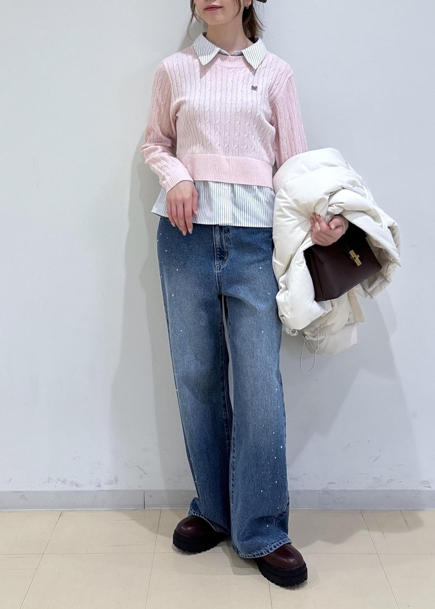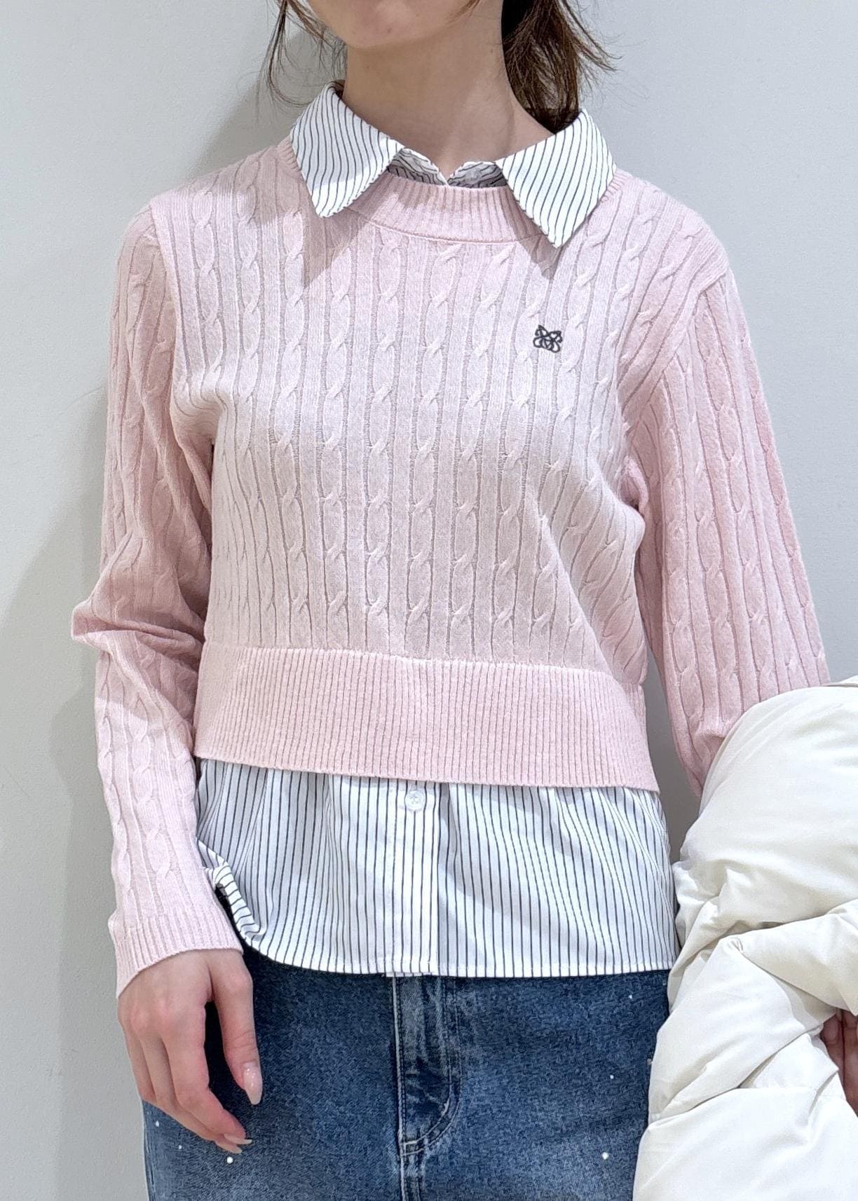 VIS【美得】ハイゲージケーブシャツドッキングプルオーバーピンク / F¥5,489レビューニット部分がコンパクトめなので脚も長く見えてスタイルアップするシルエット感でした。