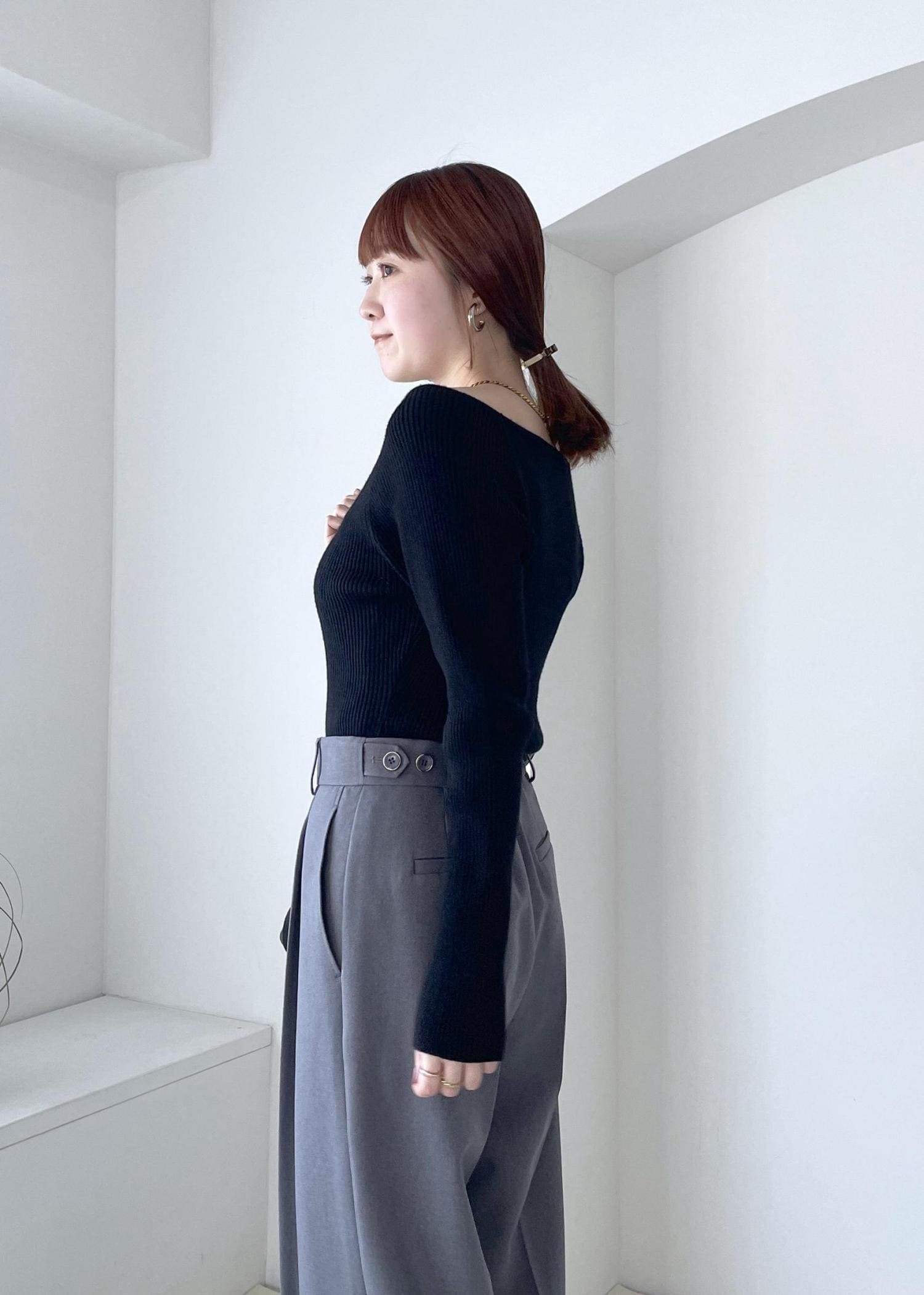 NEW!VIS【美得】スクエアネックニットプルオーバーブラック / F¥4,389レビュー1枚あると万能に使えるニット♡やや体にフィットするサイズ感ですが、しっかりとした生地感でボディラインを拾いすぎないです。スクエアネックなので首周りスッキリと見え、骨ストさんは特に華奢見えも◎カーデやジャケットのインナー使いもできます!