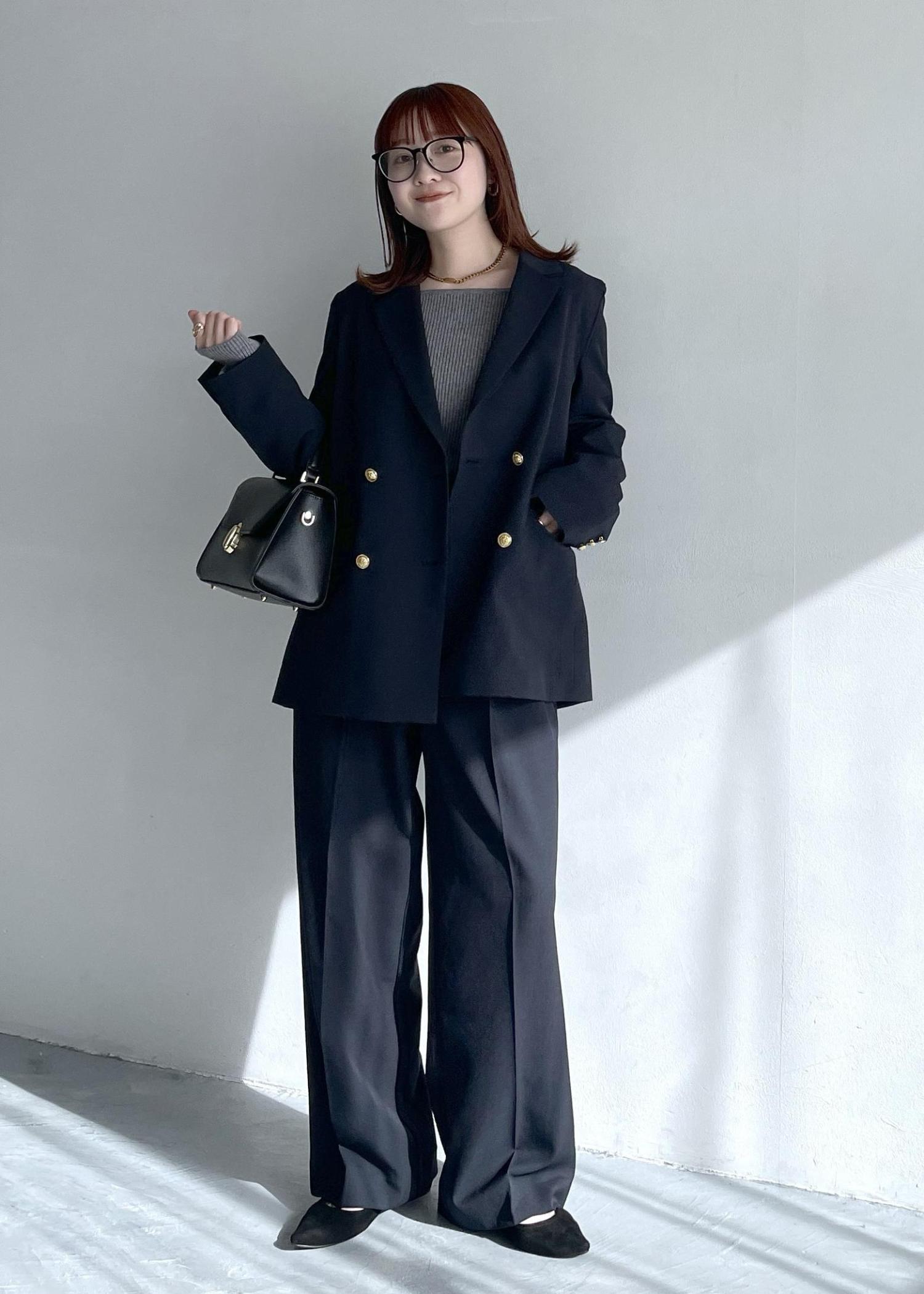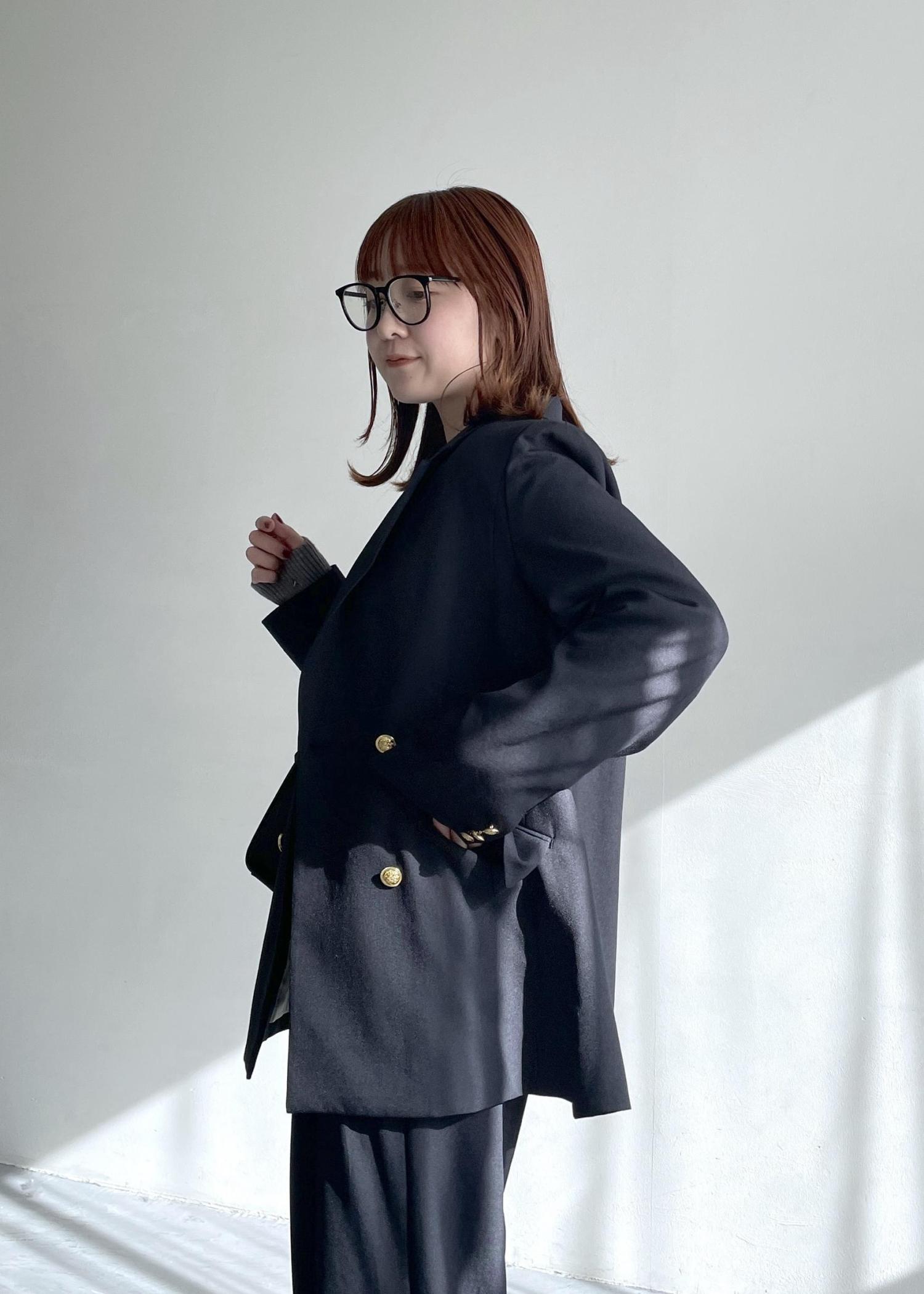予約VIS【美easy】コンフォート金ボタンジャケット/イージーケア・UVケア・セットアップ対応ネイビー / M¥8,899レビュー身長159cm/Mサイズ着用。ヒップが隠れるやや長めの着丈ですが肩幅はジャストサイズなので、大きく見えず綺麗なシルエットで着用できます。ジャケットなのに洗濯機OKでシワにもなりにくい、何度も購入してる優秀シリーズです◎