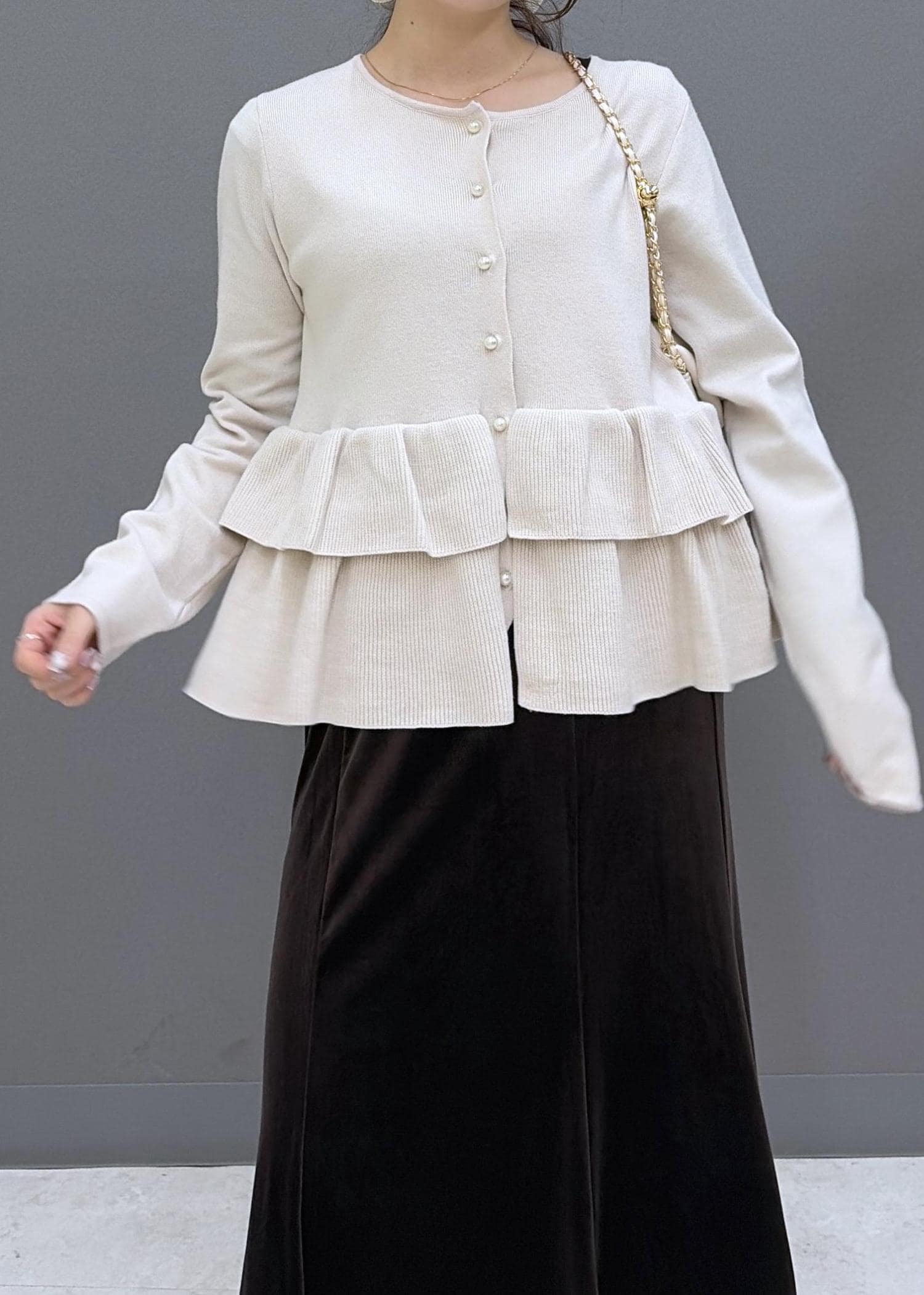 VISティアードペプラムニットカーディガンベージュ / F¥6,589レビューフリーサイズのトップスです!