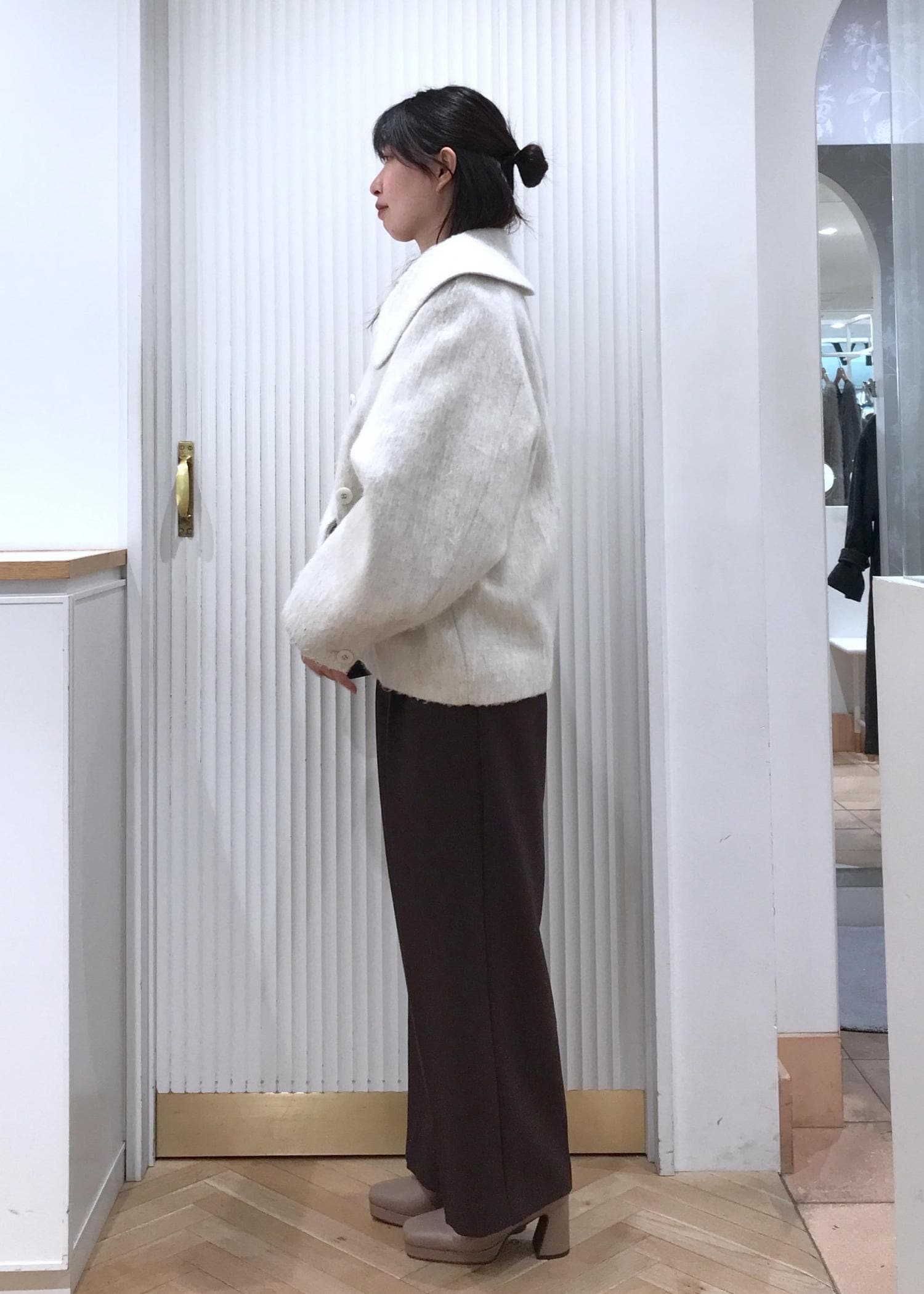 ビッグカラーなので、お顔周りがスッキリして小顔効果もありますよ。