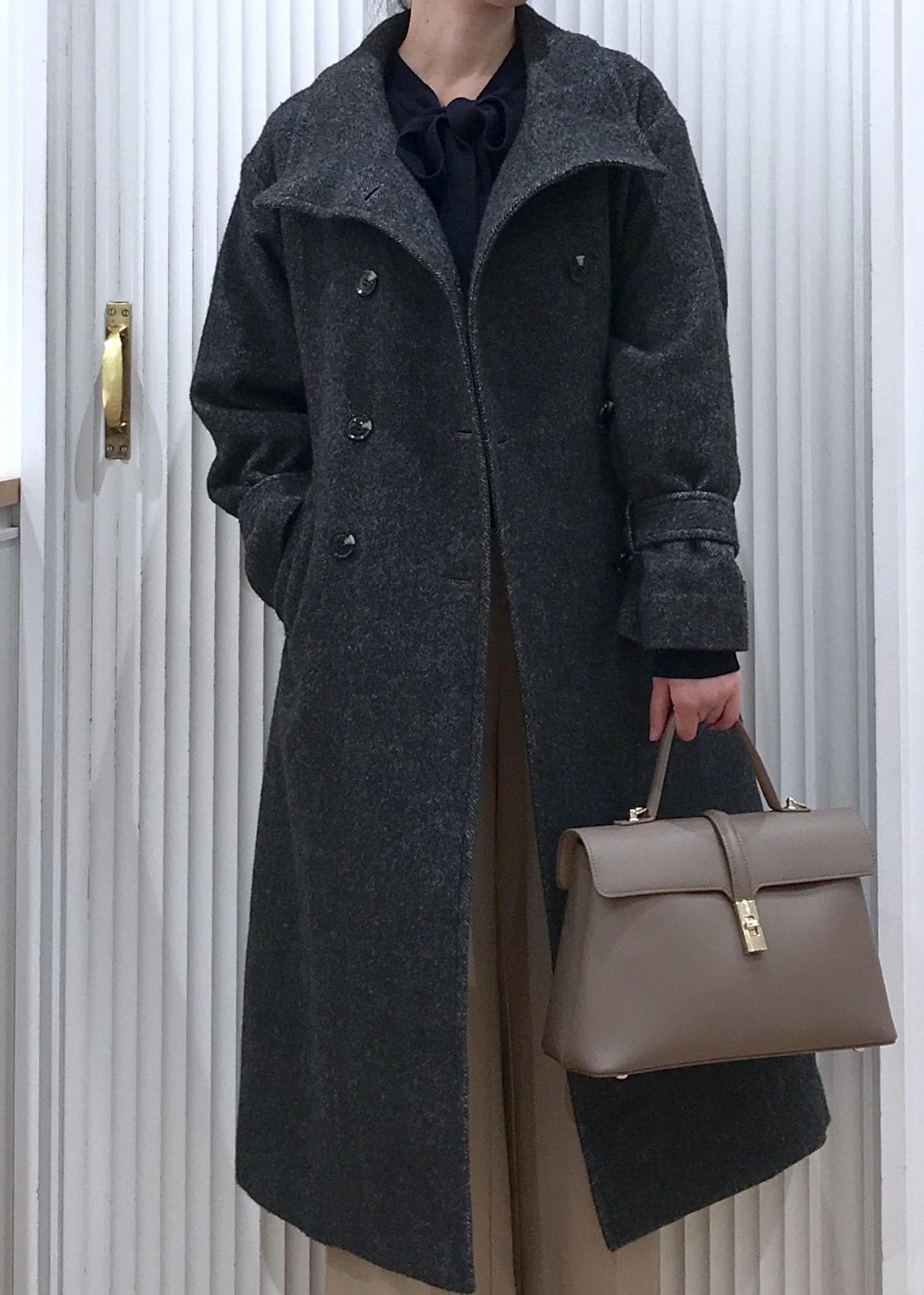 また、素材はジャパンファブリックのウール混なので、ロングコートなのに軽く沢山着込まなくても暖かく着用出来ます。 -