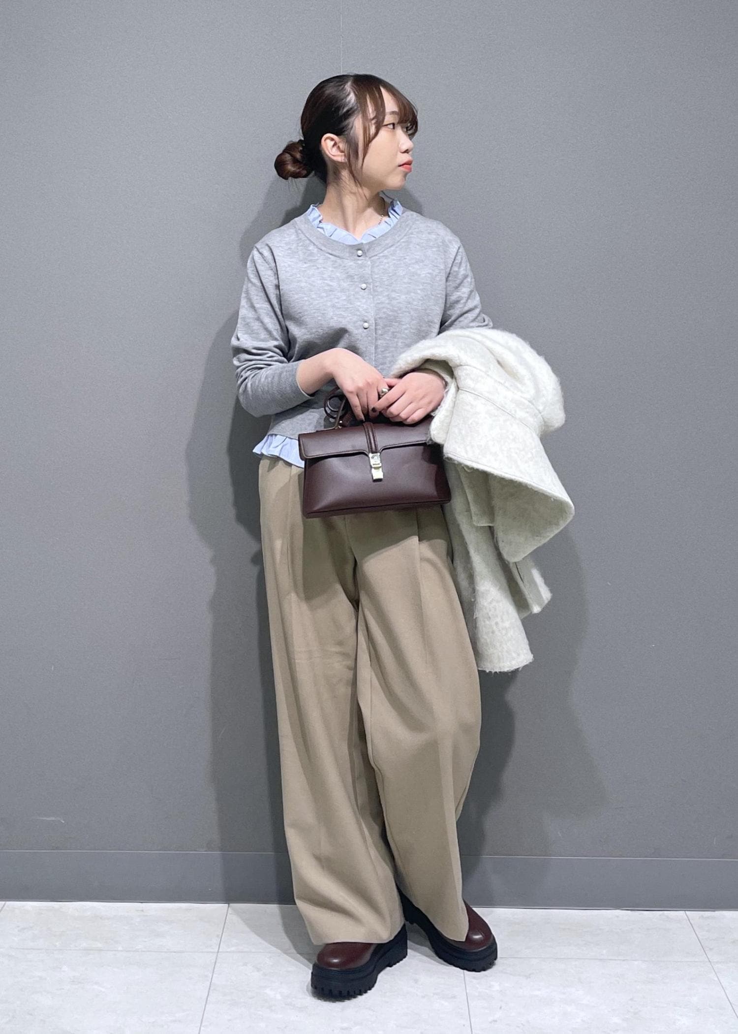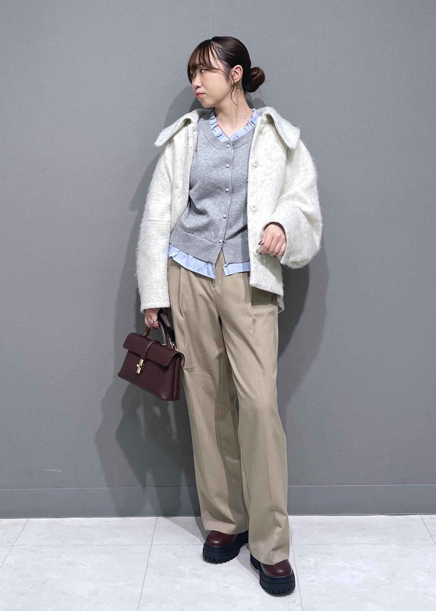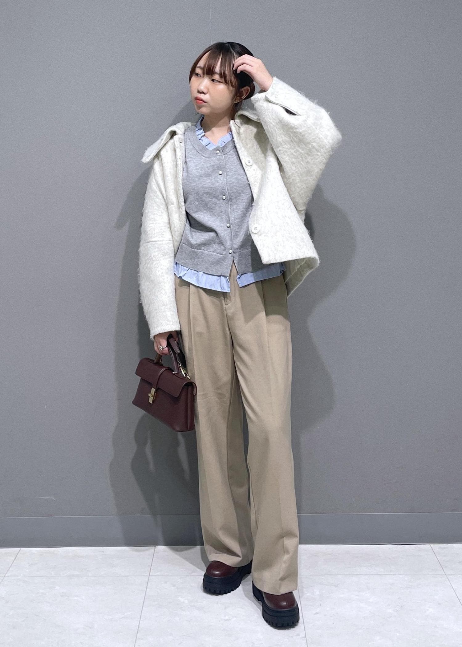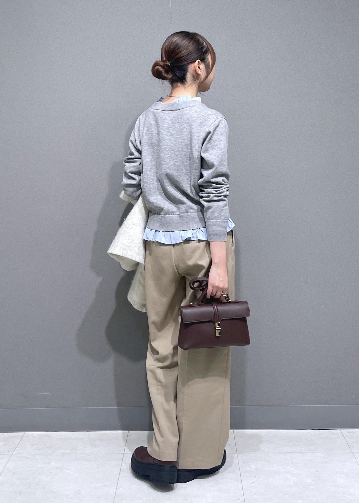 シルエットが綺麗で絶妙な丈感なので、パンツもスカートもミニ丈のボトムスも、相性抜群です◎