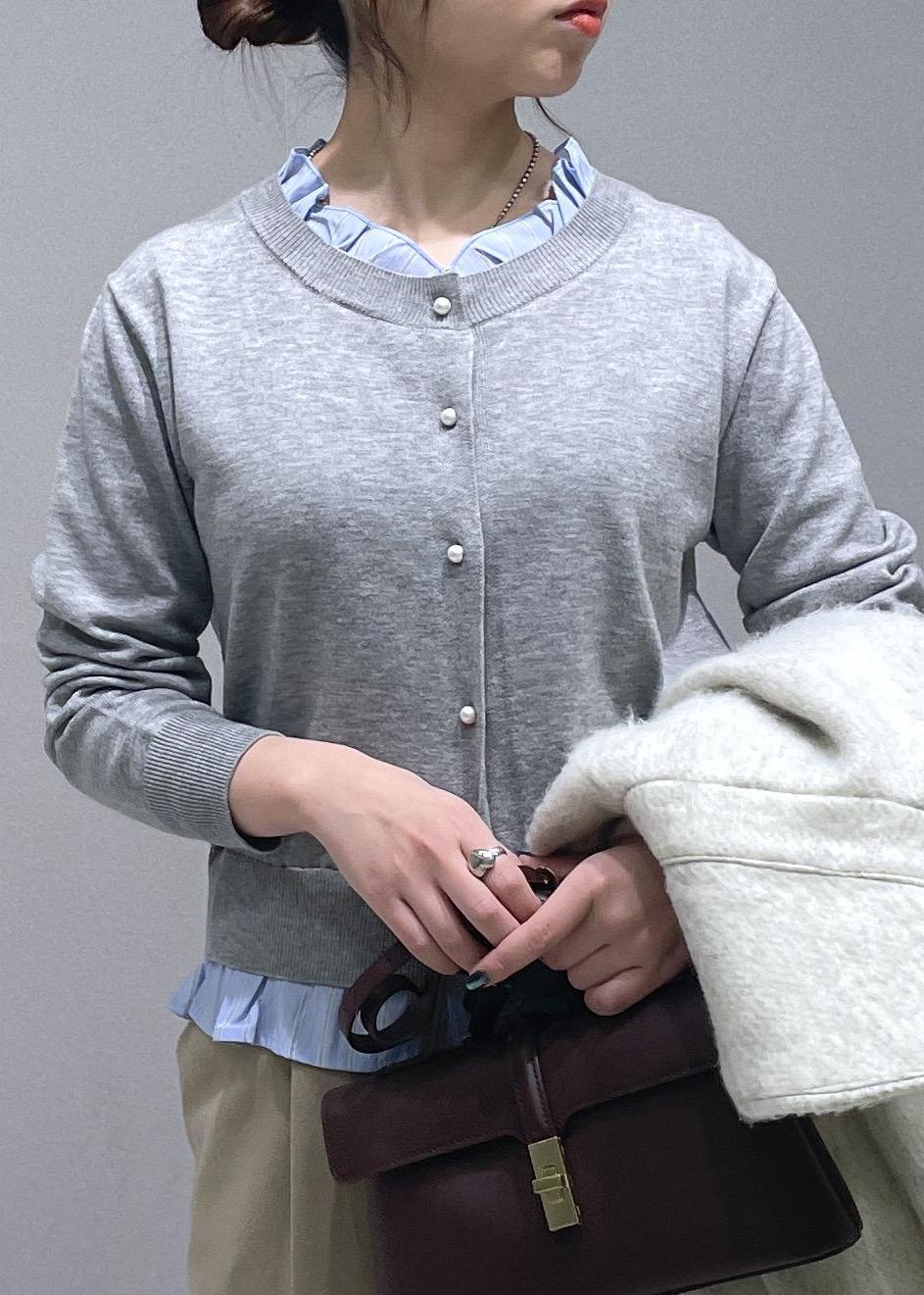 NEW!VIS【美得】フリル襟ドッキングニットカーディガントップスライトグレー / F¥5,929レビュー襟元にフリルがついた、ドッキングトップスです。裾もフリルになっており、スマートな印象ながら女性らしい雰囲気もあるトップスです。
