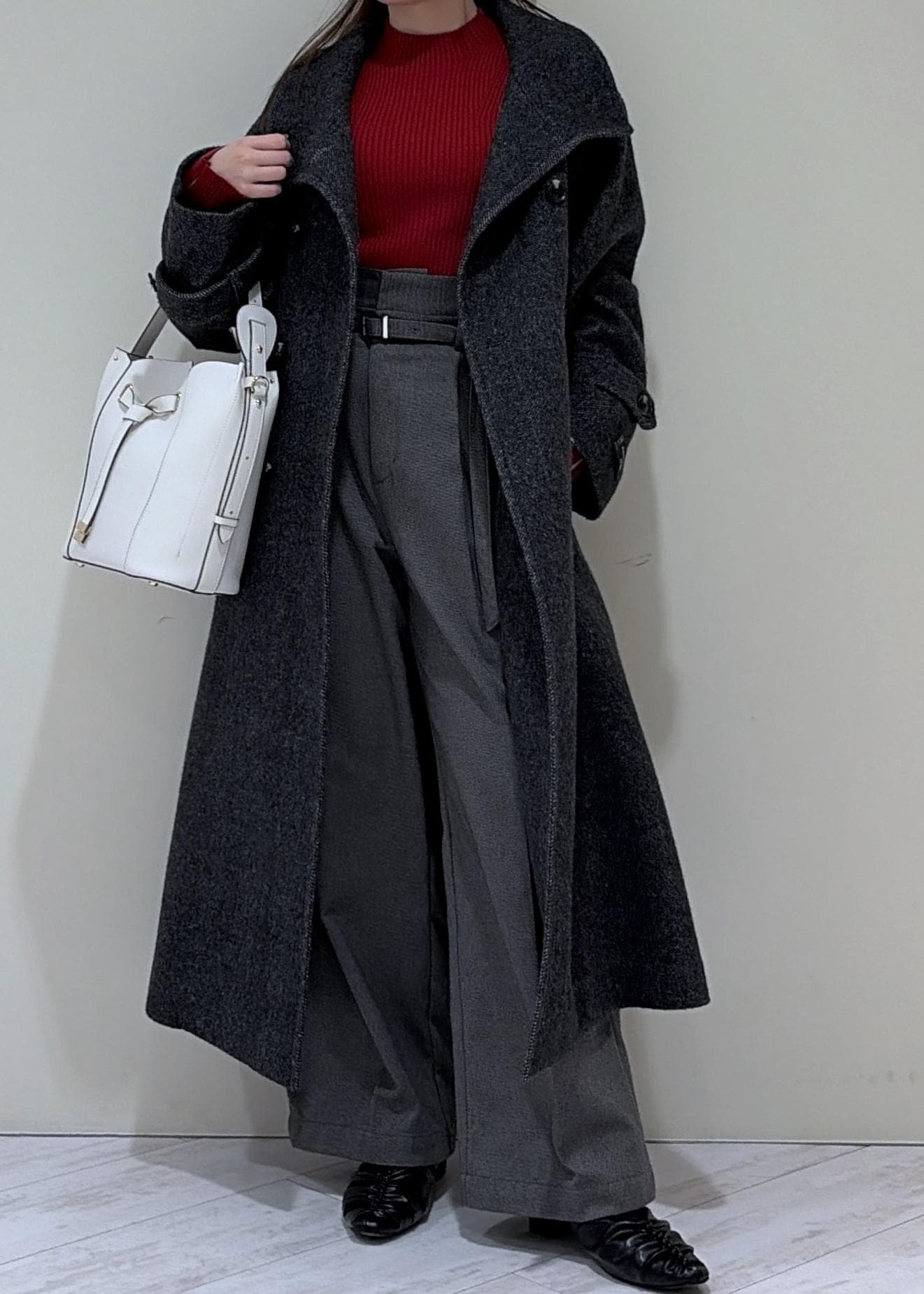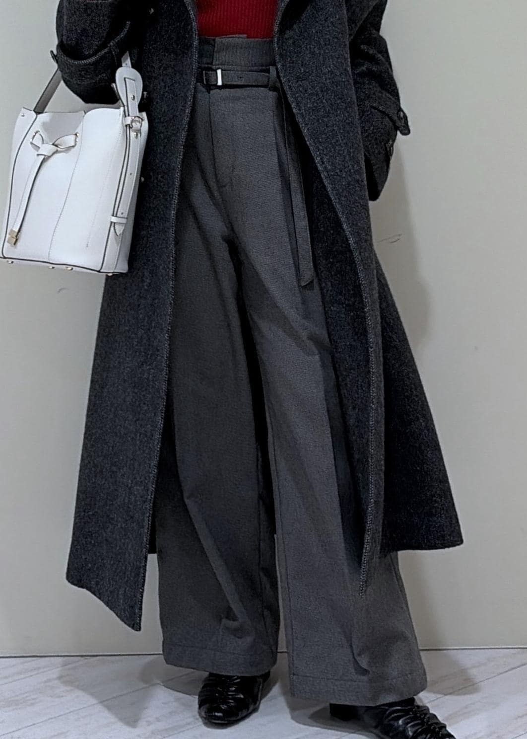 VIS起毛ウールライク版ベルトディテールタックワイドパンツグレー / S¥5,271レビュー身長150センチ、Sサイズ着用で、くるぶし隠れる丈感
