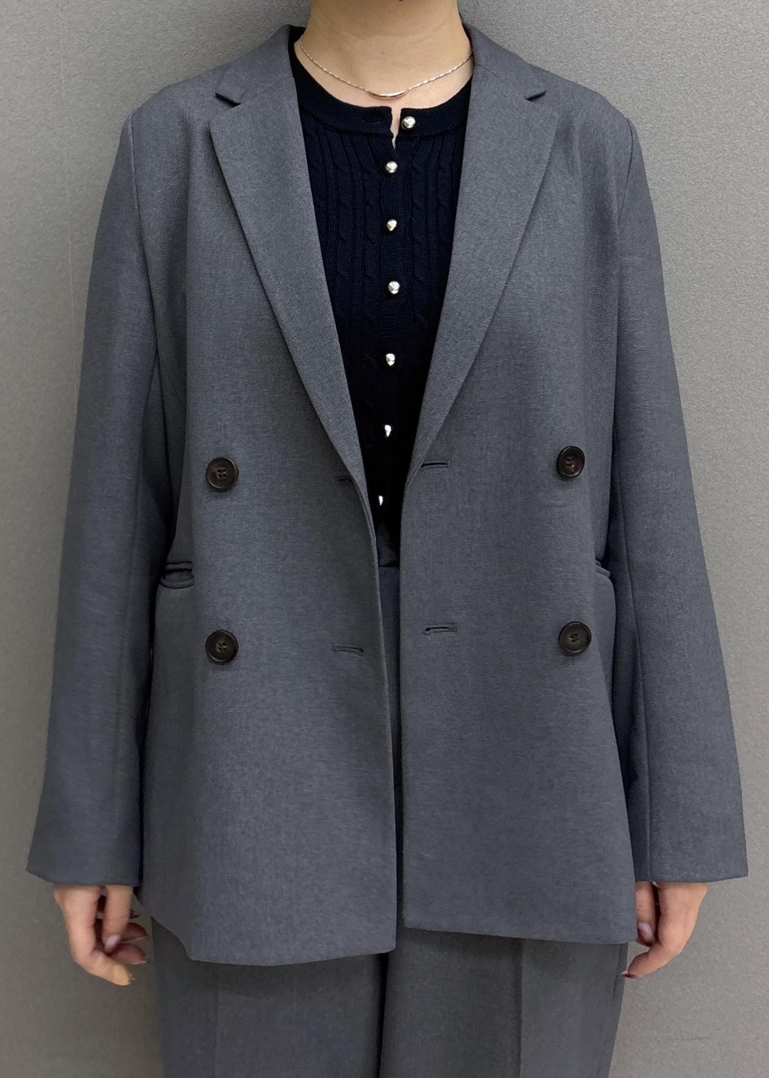 VIS【美easy】ウーリッシュダブルブレストテーラードジャケット【セットアップ対応/洗える】グレー / M¥8,899レビュー大人気の美easyシリーズに秋冬バージョンが登場!160㎝でMサイズ着用しています。腕まわりや身幅など全体的にややゆとりがあり、ヒップまわりが隠れる着丈でした◎シンプルなデザインなので、仕事着でも普段着でも着まわしできます!