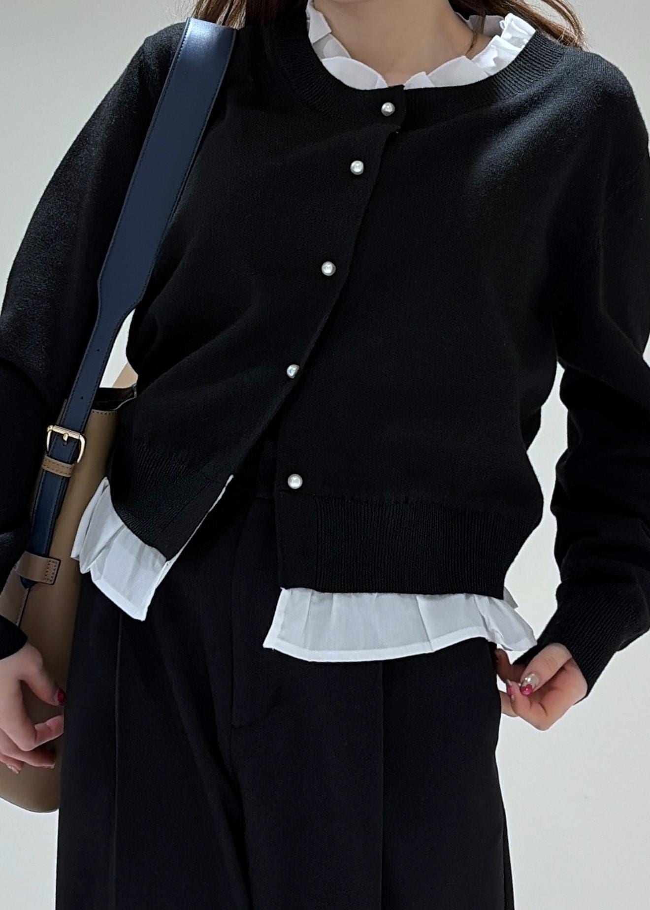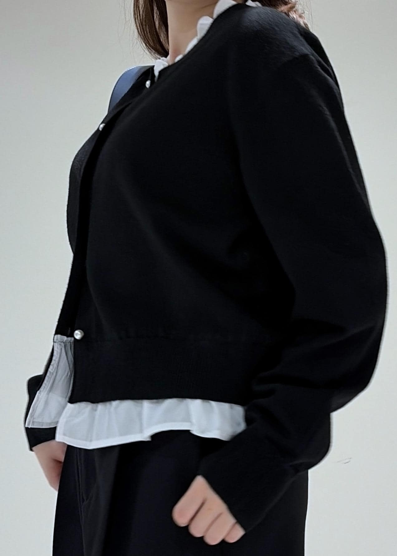 VIS【美得】フリル襟ドッキングニットカーディガントップスブラック / F¥5,929レビュー身長150センチヒップ少しかかる丈感
