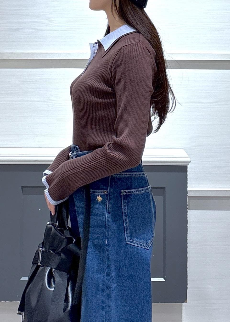 VISダブルカラーポロニットトップスブラウン / F¥5,929レビュー156cmでヒップにかかる丈感です。