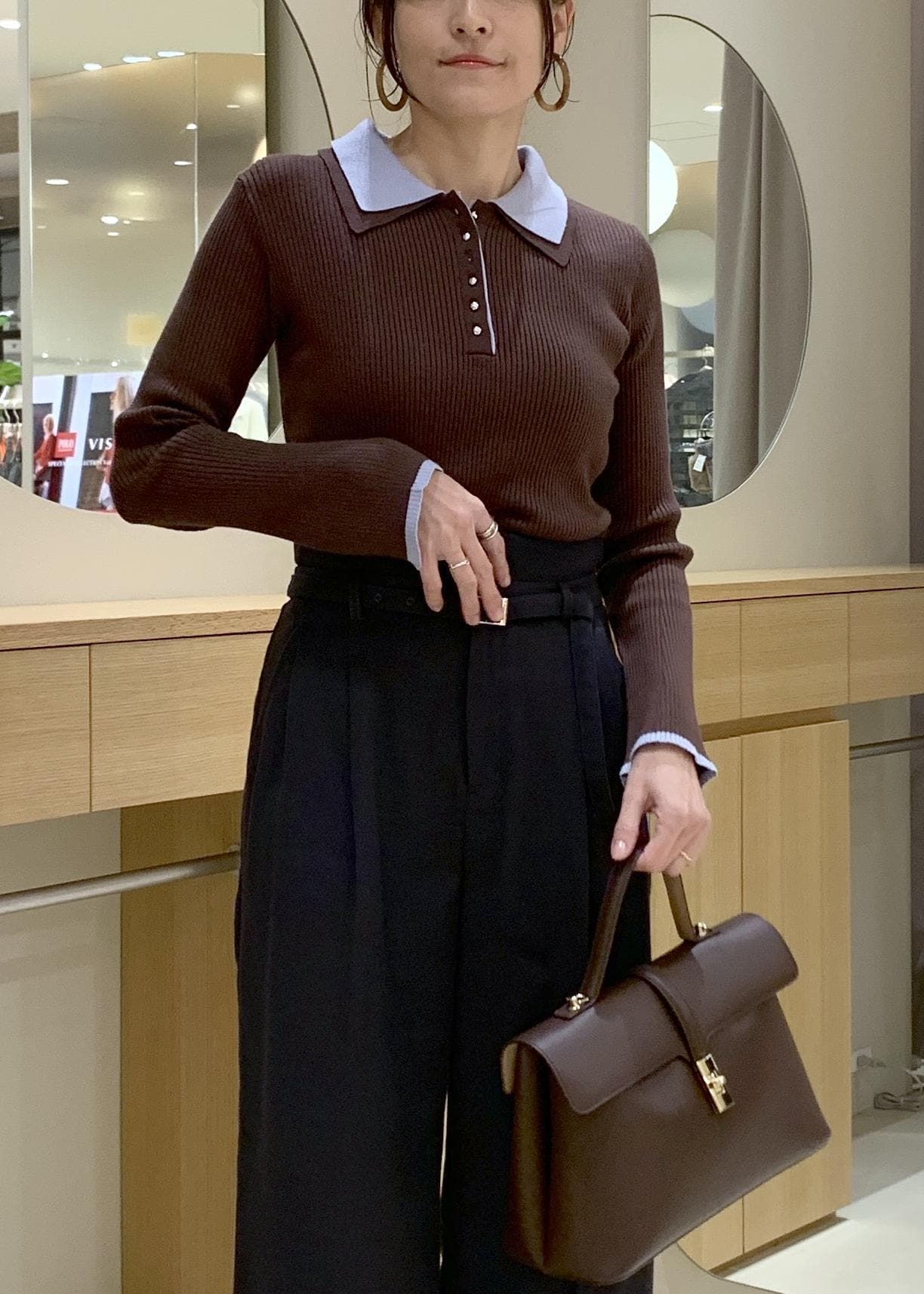 VISダブルカラーポロニットトップスブラウン / F¥5,929レビューポロ襟でもカジュアルすぎずに、一枚で着映えします。リブ編みで伸縮性もあり、柔らかい質感です。