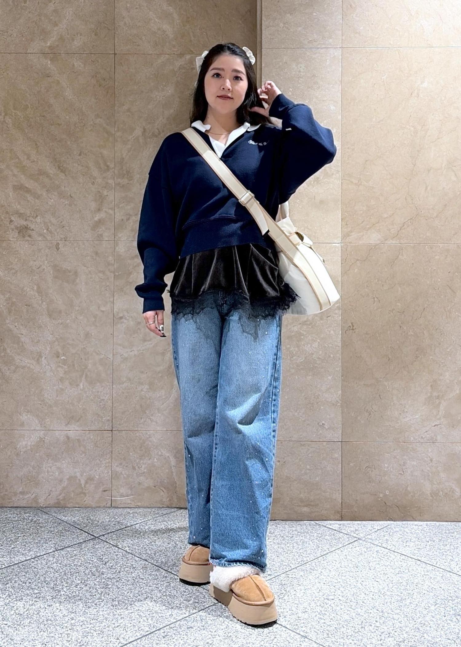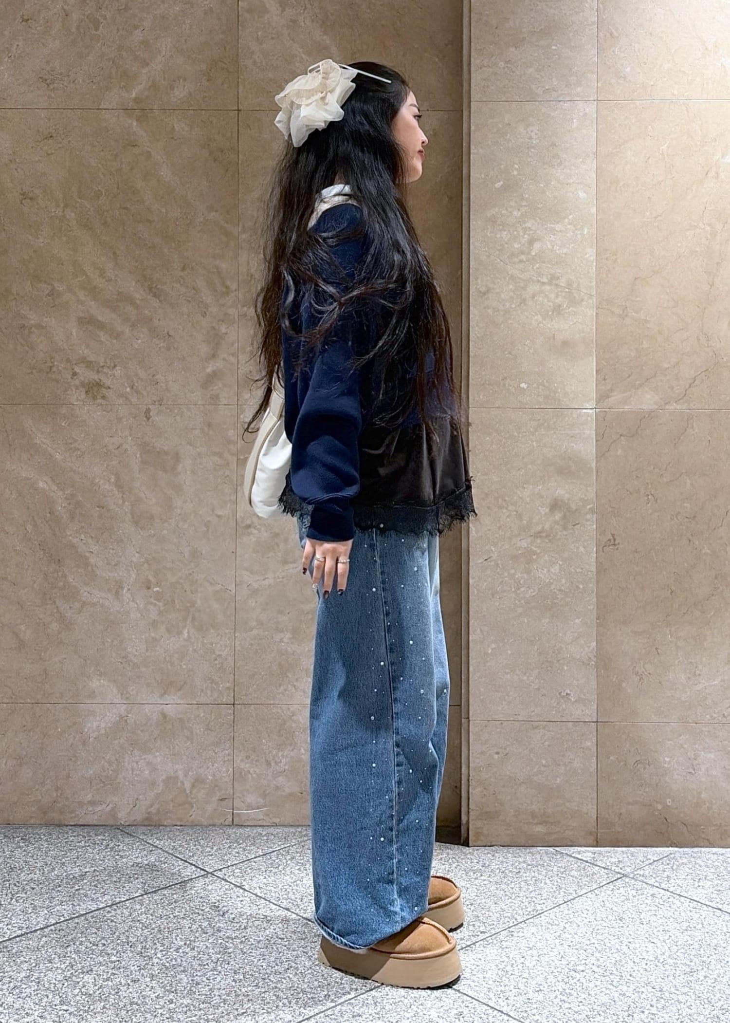 VISビジューデニムパンツブルー / M¥6,327レビュービジューがとっても可愛くて、形も横の縫い目が前に入っているタイプで脚長効果があります◎履きやすくてリアルバイです。
