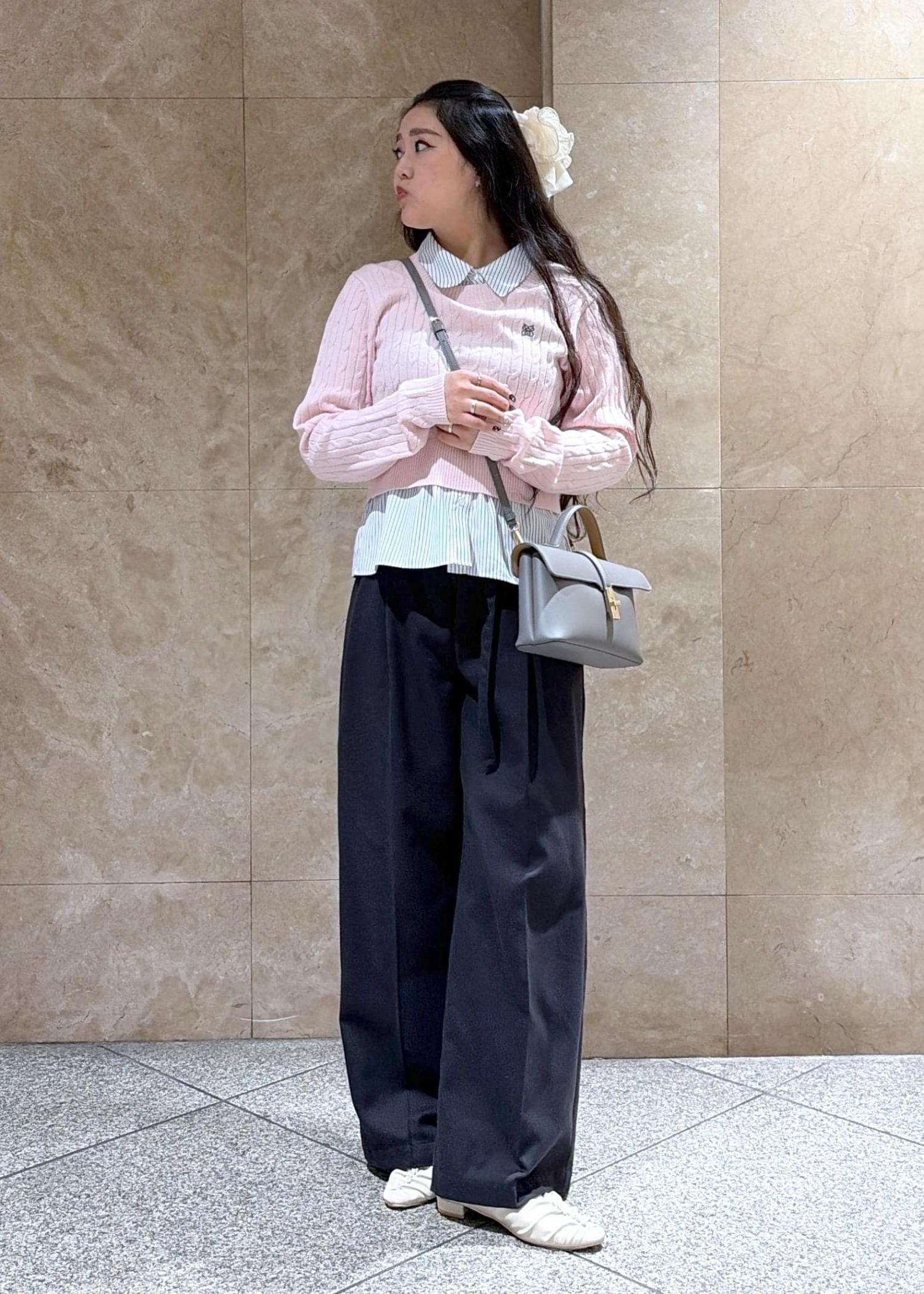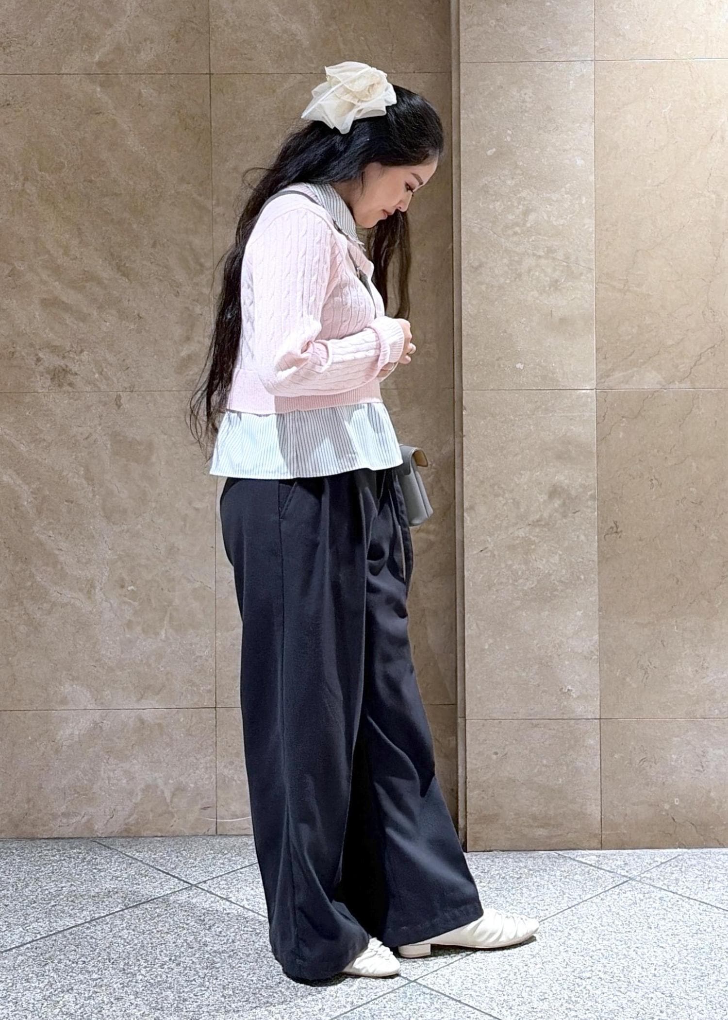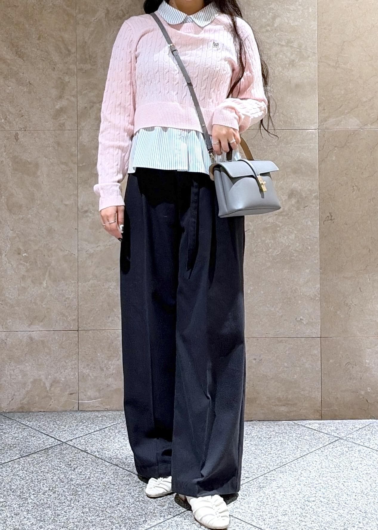 VIS起毛ウールライク版ベルトディテールタックワイドパンツスミクロ / M¥5,271レビューベルト付きのパンツで生地感が冬っぽくてとっても可愛いです◎♡