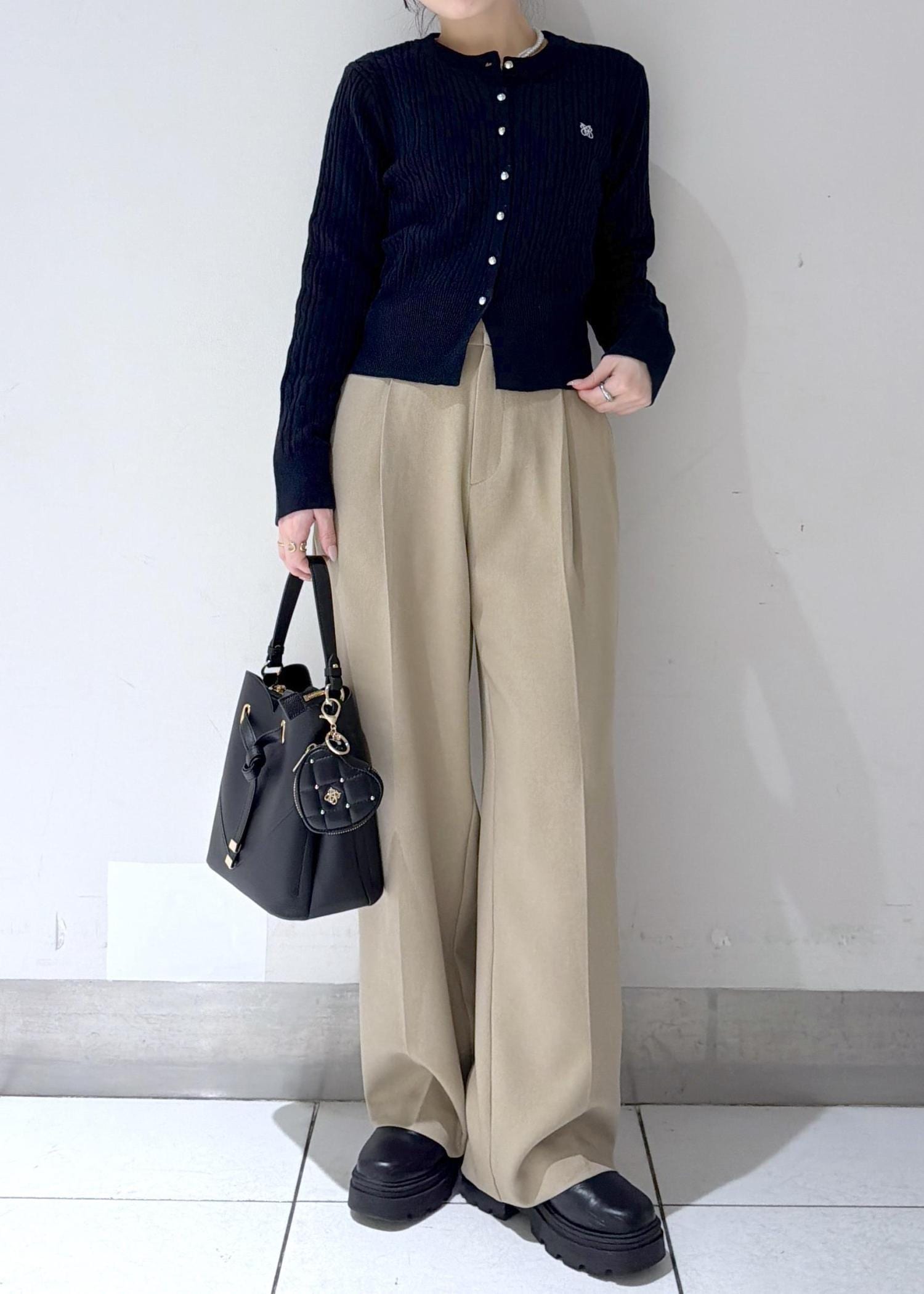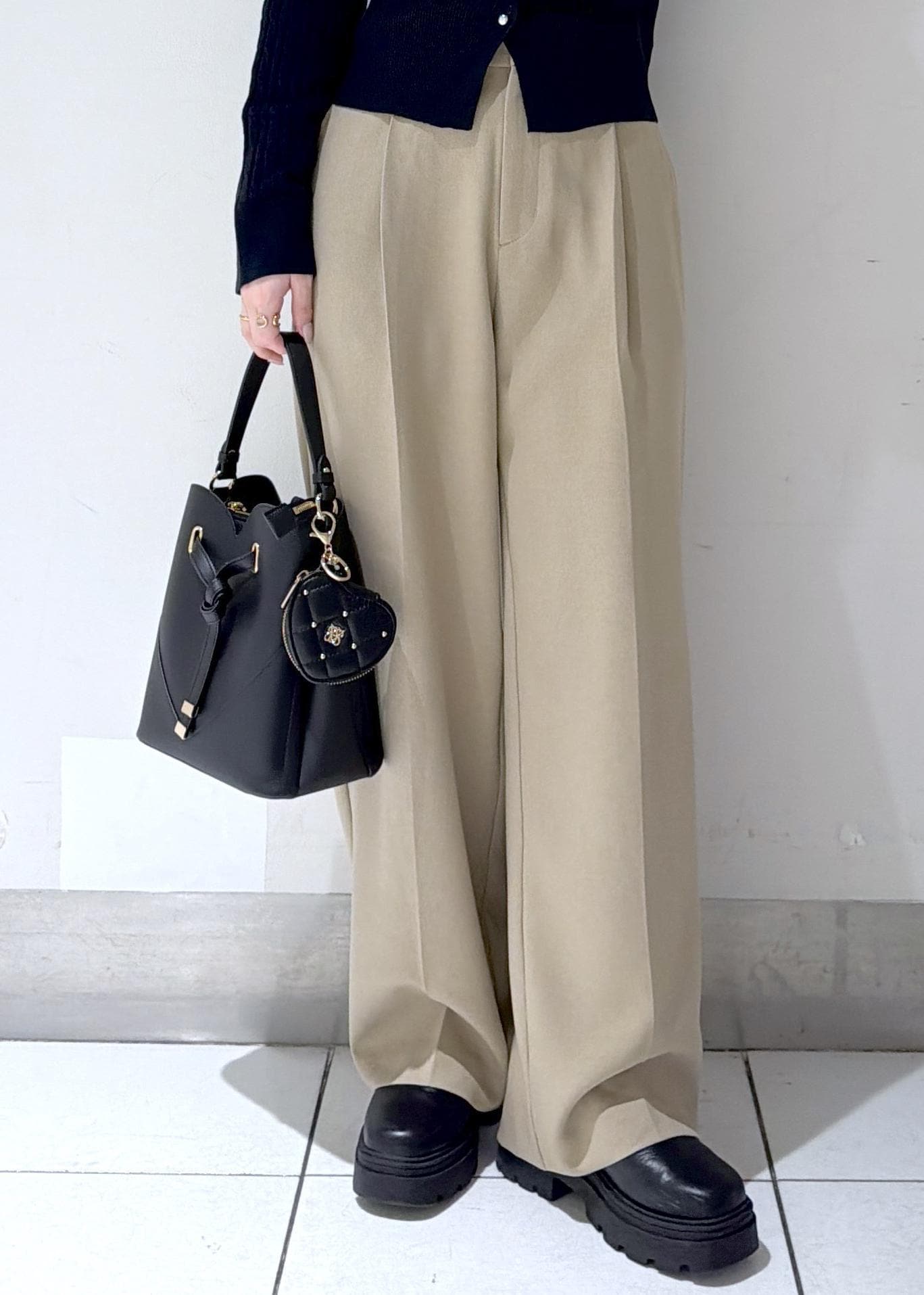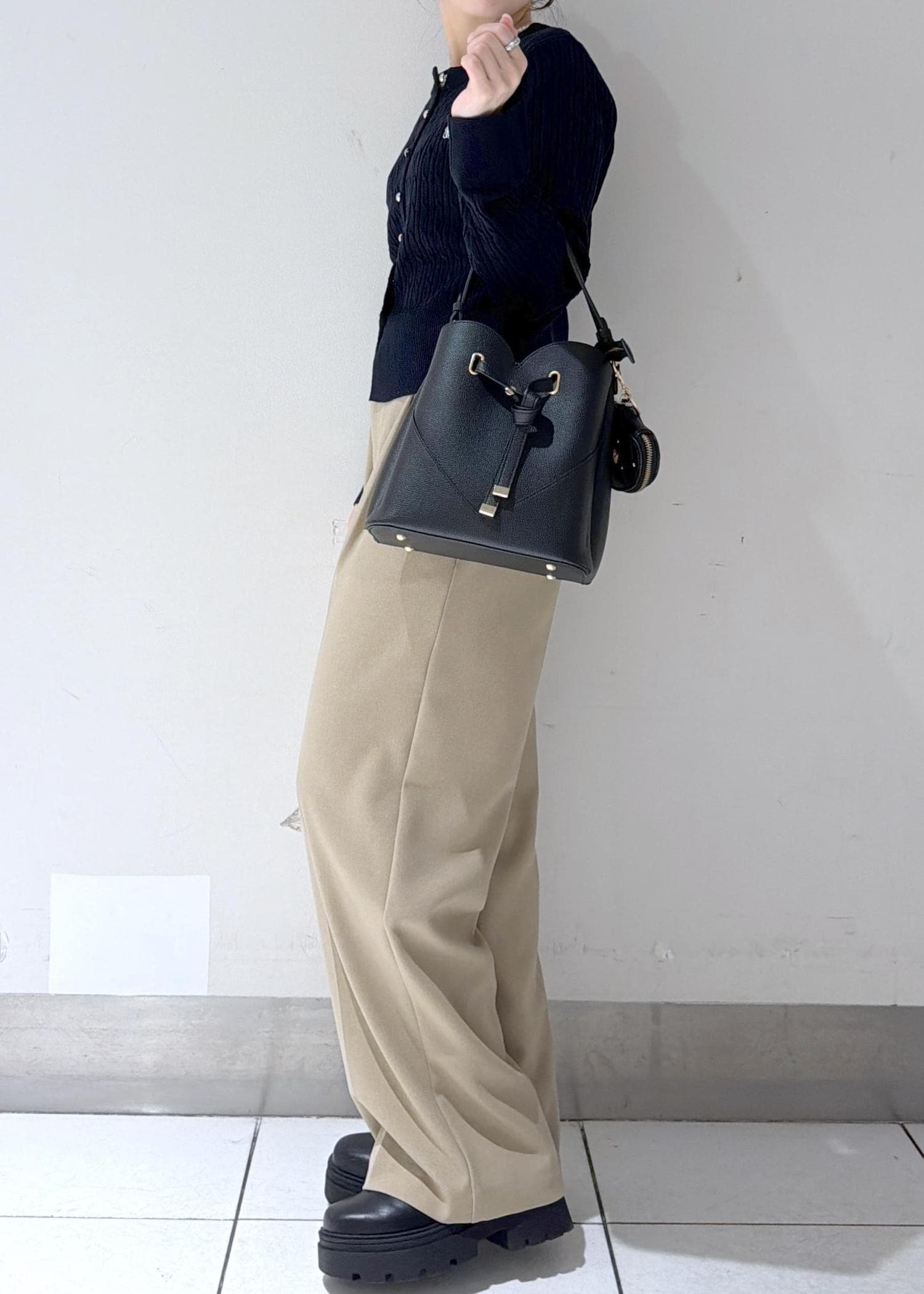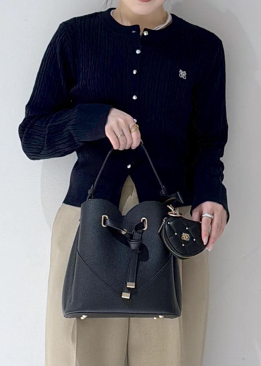 ブラックは、ハートがさり気なく分かるようになってるので、いろんなテイストのコーデにも使いやすいです◎金の金具が高見えします♪