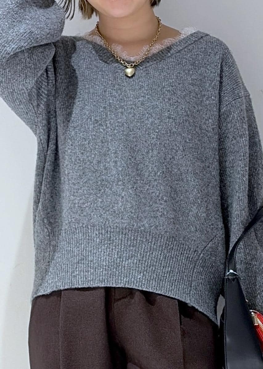 VISVネックレースニットプルオーバーグレー / F¥5,929レビュー鎖骨ラインをレースが綺麗に見せてくれます!