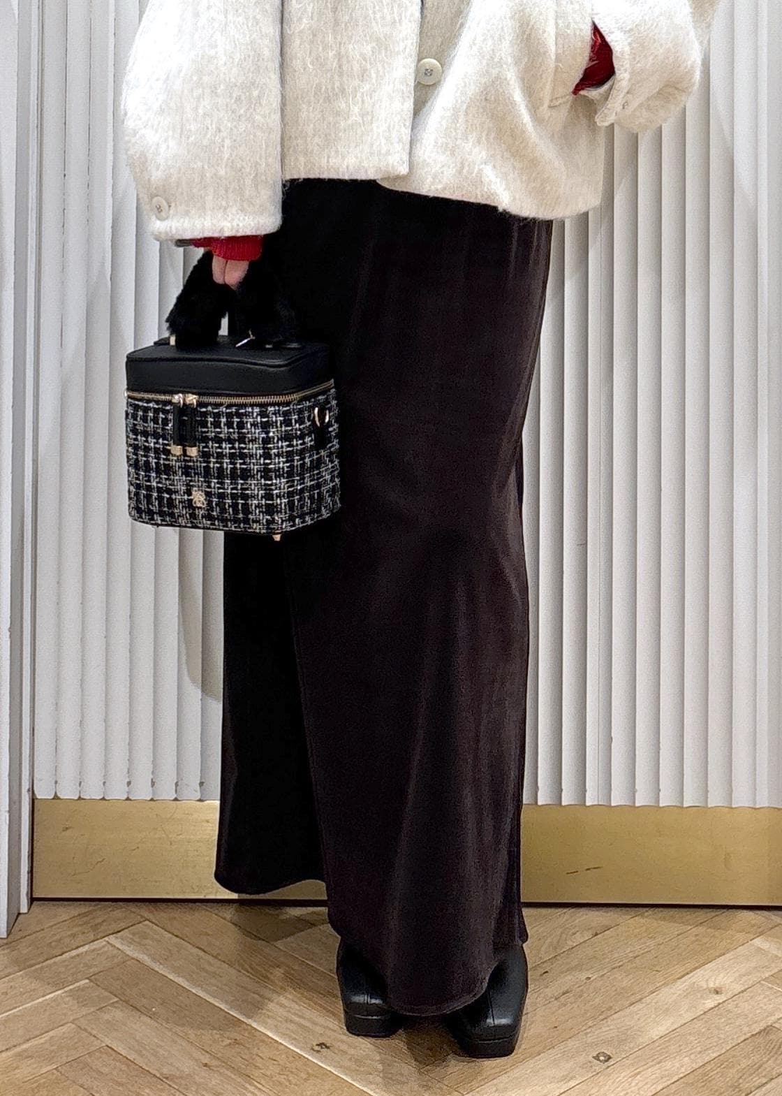 VISファーハンドルキルティング&ツイードバニティバッグ/2WAYその他 / F¥6,327レビューキルティングのコンパクトなバッグで高級感があります!手持ちのファーはチャックで取り外しができるため簡単なのに見栄えが良いです!三つ折りの財布であれば問題なく入るサイズ感でした!ショルダーも入ってるので肩掛けもできます☺︎